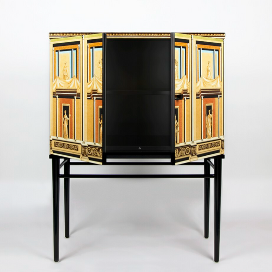 Fornasetti Raised small sideboard Facciata Quattrocentesca Black, Yellow & White - Brass or Black Base