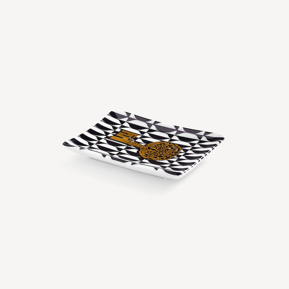 Fornasetti Rectangular ashtray Chiavi gold and Losanghe black/white