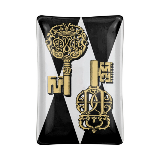 Fornasetti Rectangular ashtray Chiavi gold and Rombi black/white