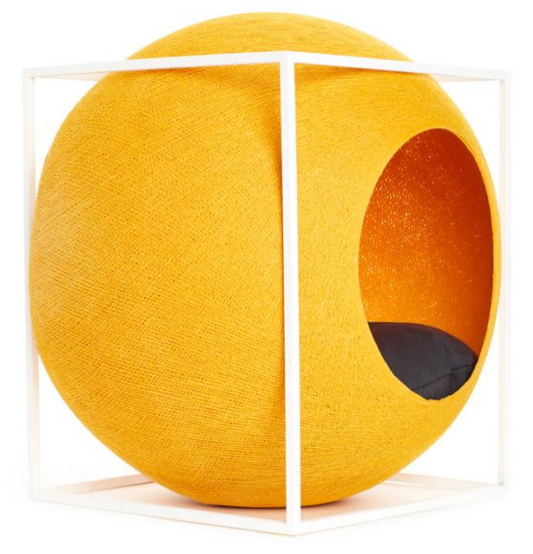 The Cube, Cat Den and Scratchpad, Pollen wooden on white metal frame