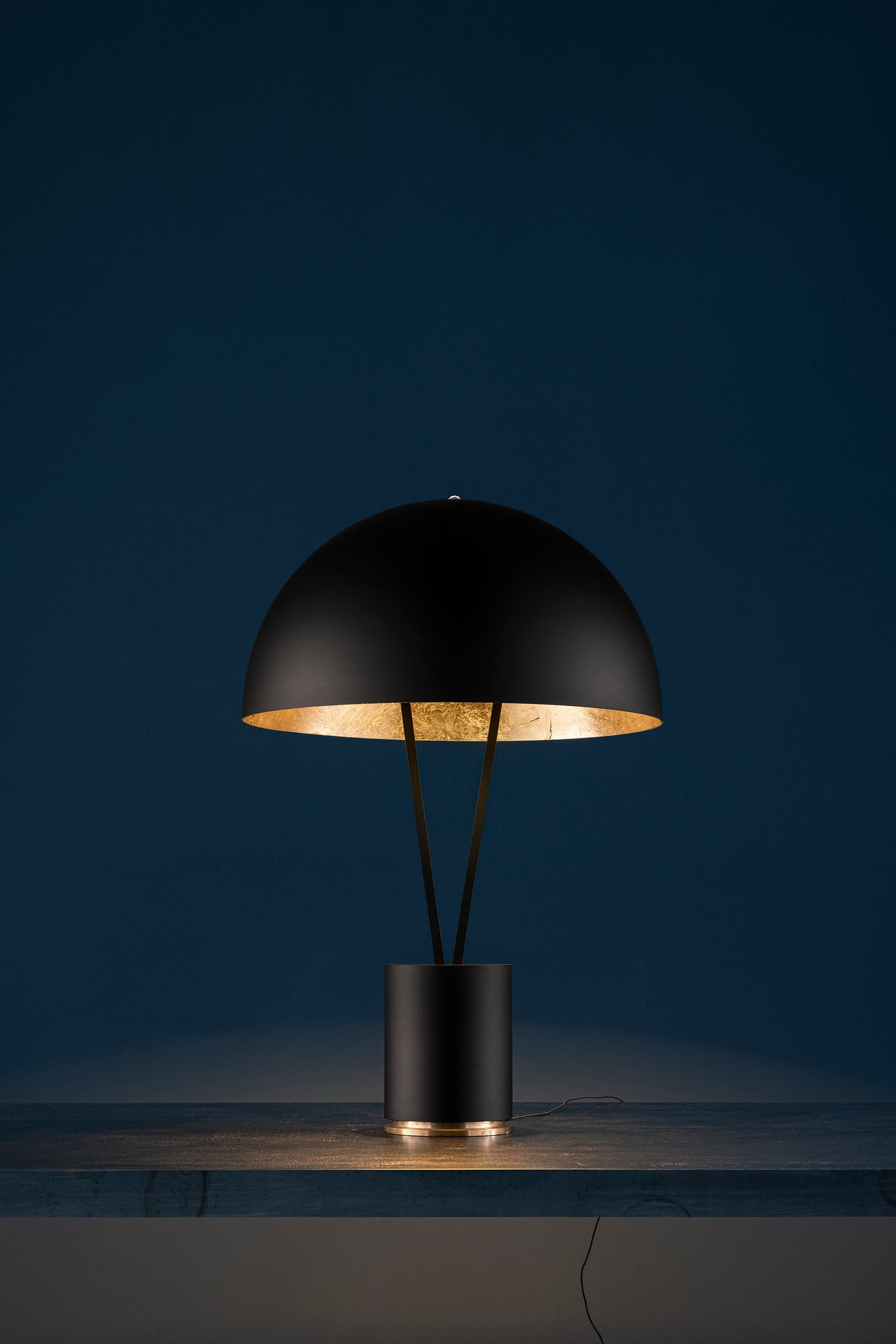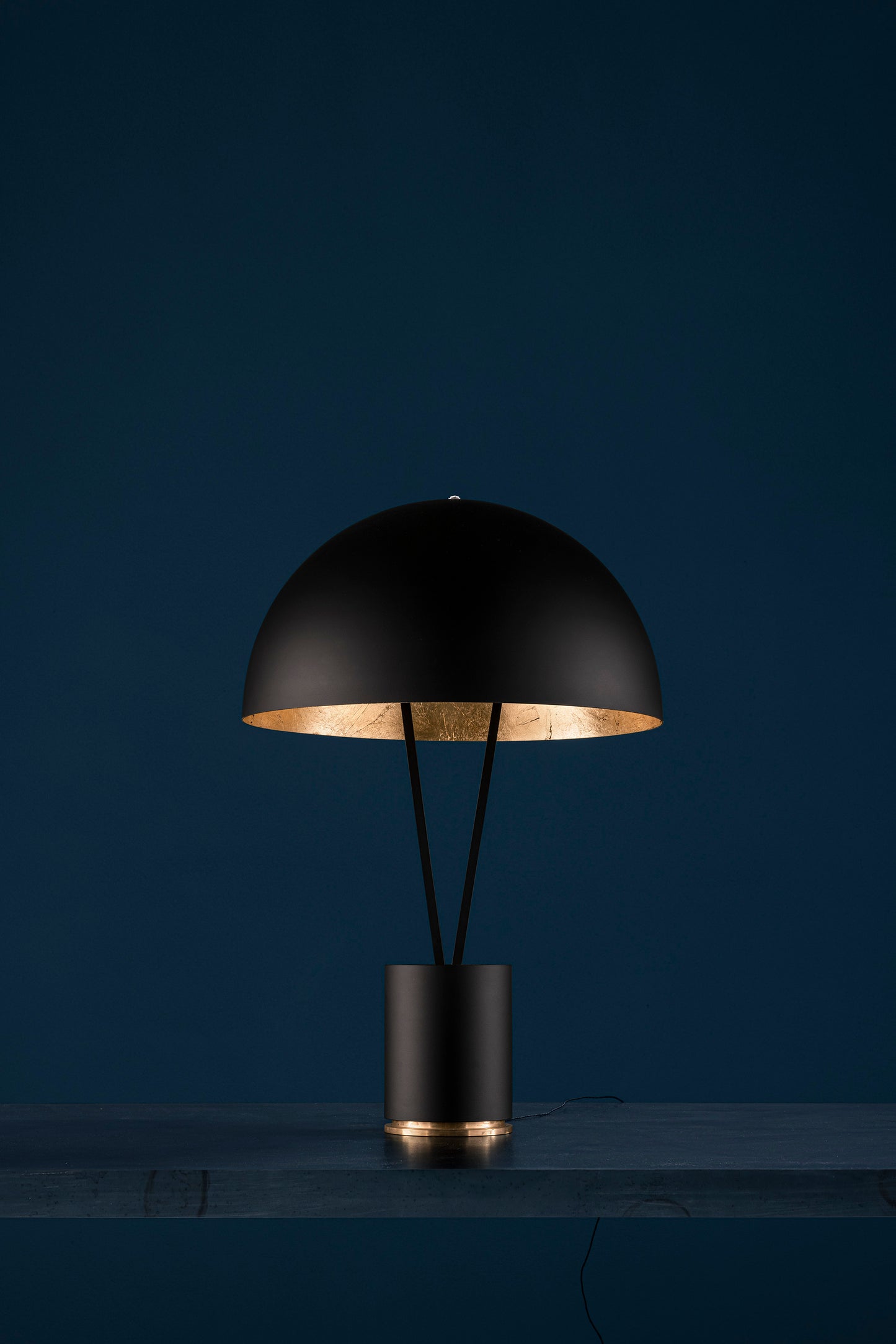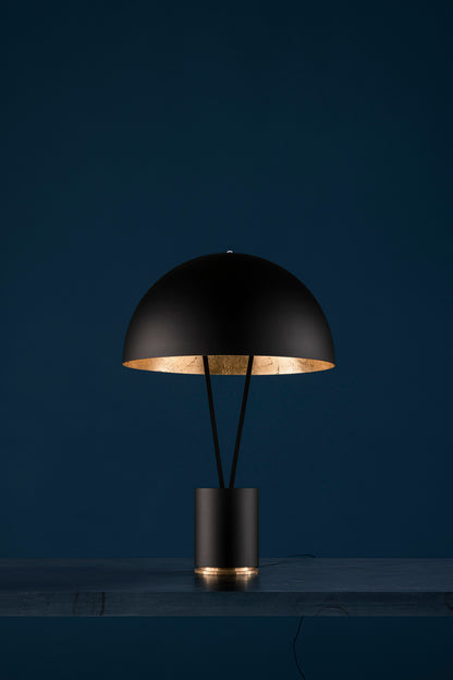 black/brass base / black tubes / ext. black/int. gold coloured leaf dome / white fly / black wire