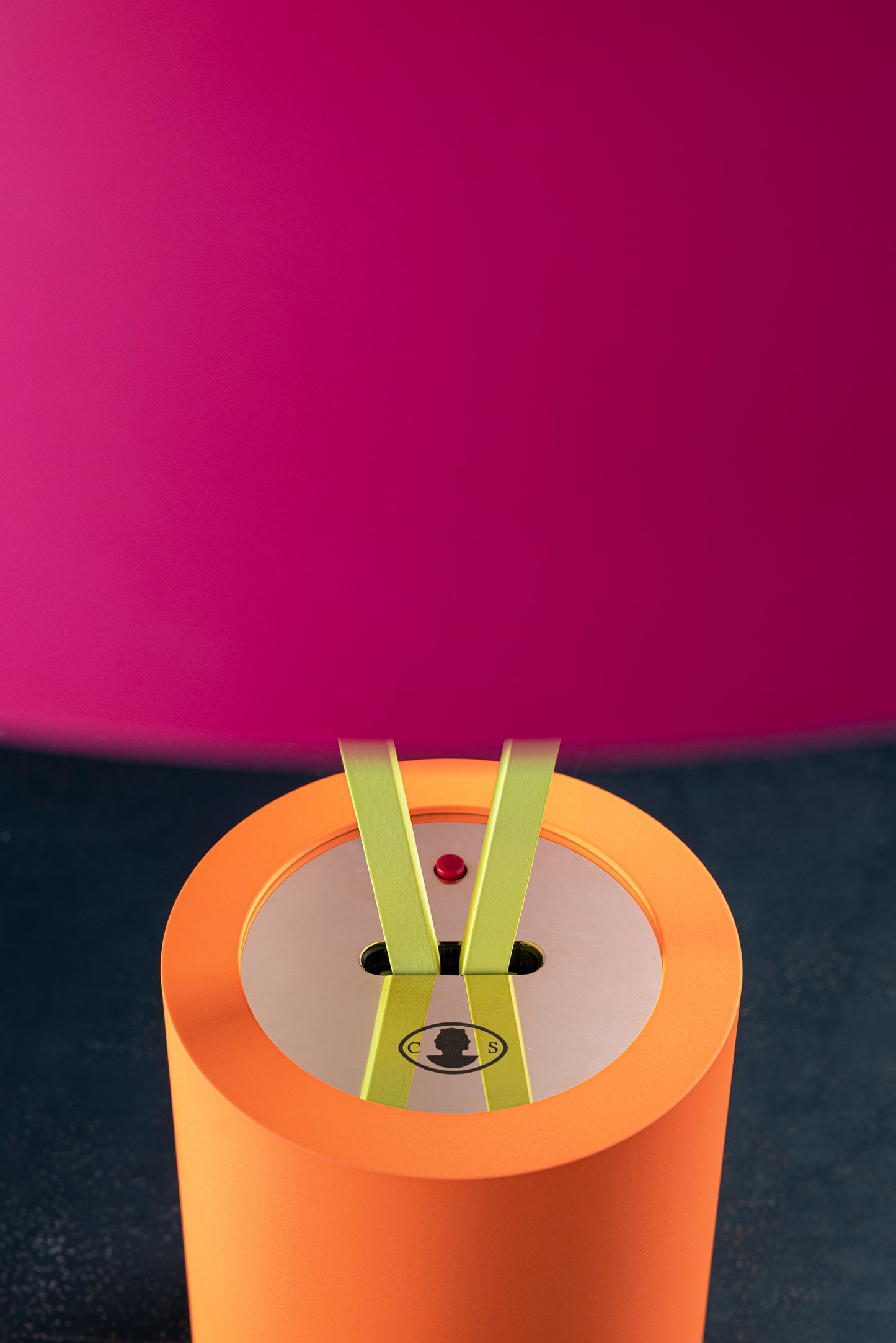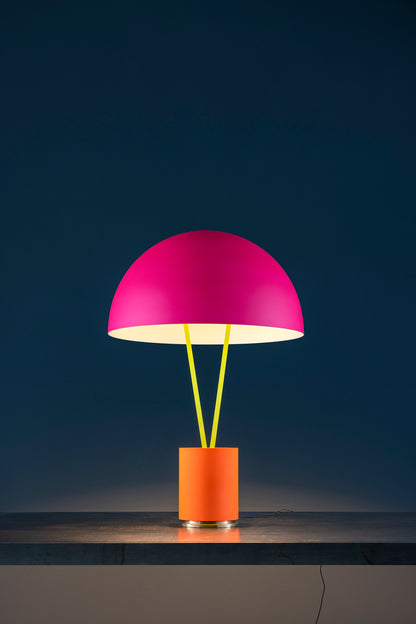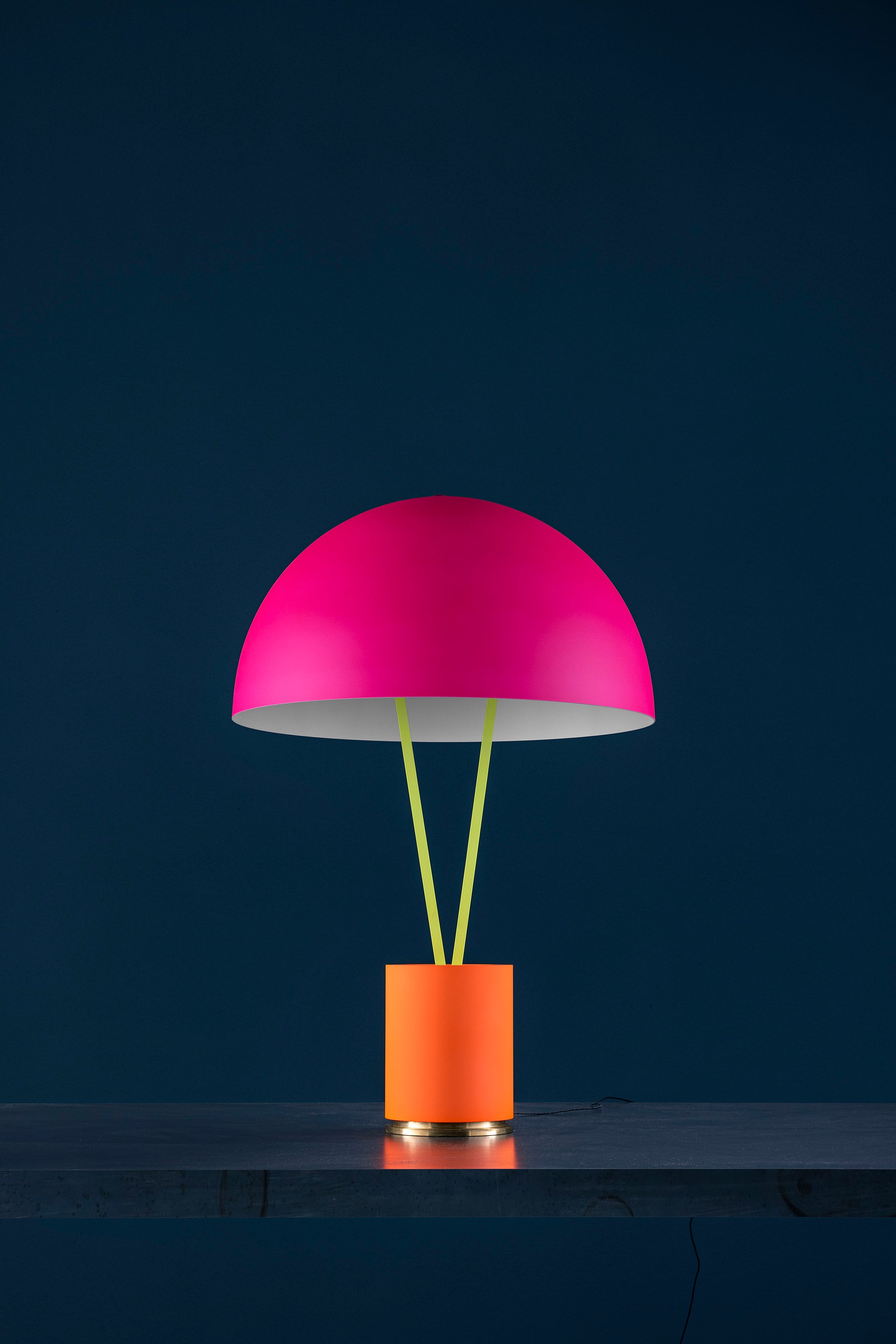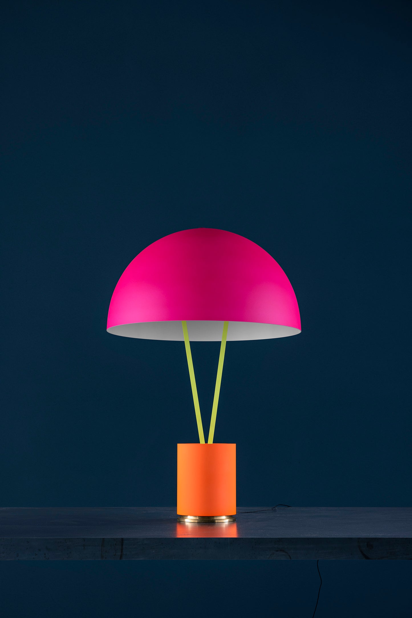 fluo orange/brass base / fluo yellow tubes / ext. fluo magenta/int. white dome / black fly / black wire