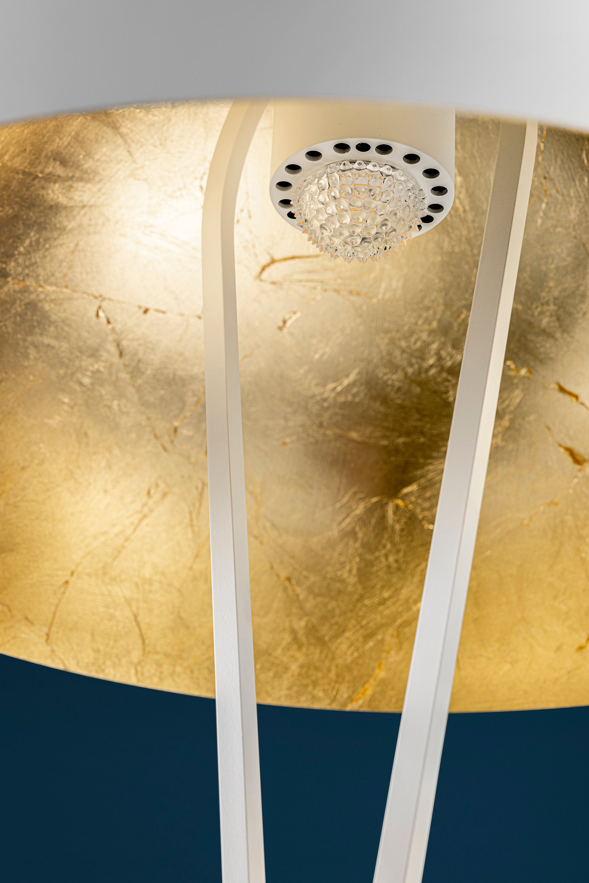 white/brass base / white tubes / ext. white/int. gold coloured leaf dome / black fly / black wire