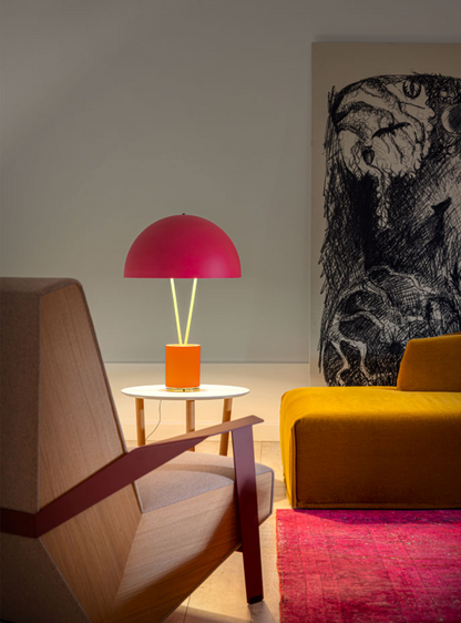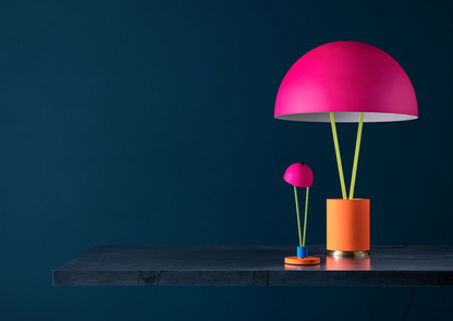 “In 2004, colour became part of our catalogue for the first time, with the PostKrisi collection. Colour was used as a message of rebirth and joy. Today, that colour is back.” Blue, yellow and red join fluo shades of pink, yellow, blue and orange, colouring hemispheres, rods, bases and surprising details that bring a lively touch to settings. The hemisphere is the hallmark feature of the new Ale range, composed of four different models: BE T, C, BIG and W, characterised by the unexpected detail of the fly resting on the hemisphere. Ale BIG is an elegant table lamp that offers a significant amount of light.