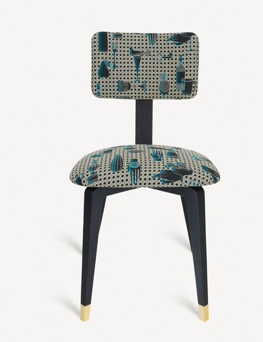 Fornasetti Upholstered chair Oggetti su canneté