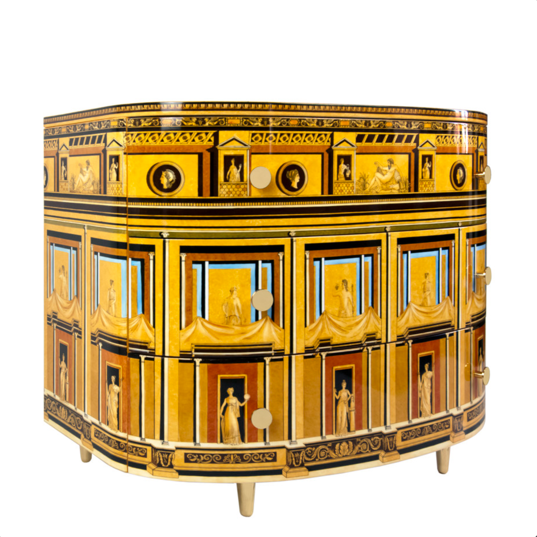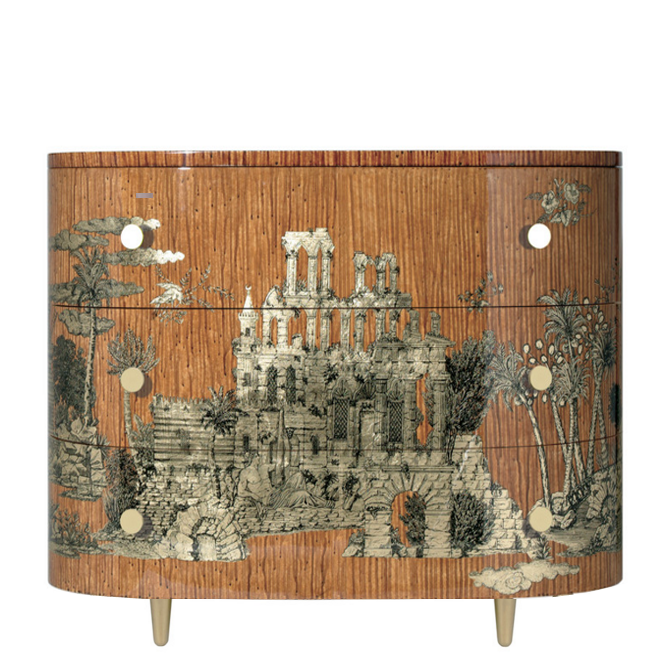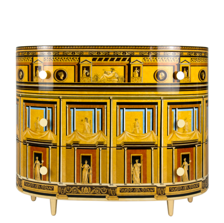 Fornasetti curved chest of drawers Pompeiana ochre tones