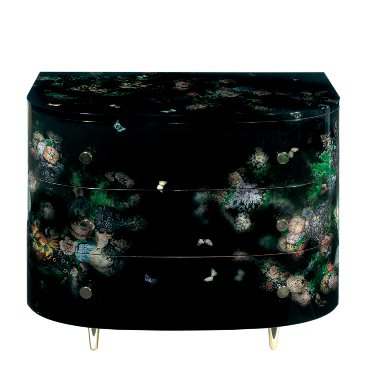 Fornasetti curved chest of drawers Fiori nella Notte colour