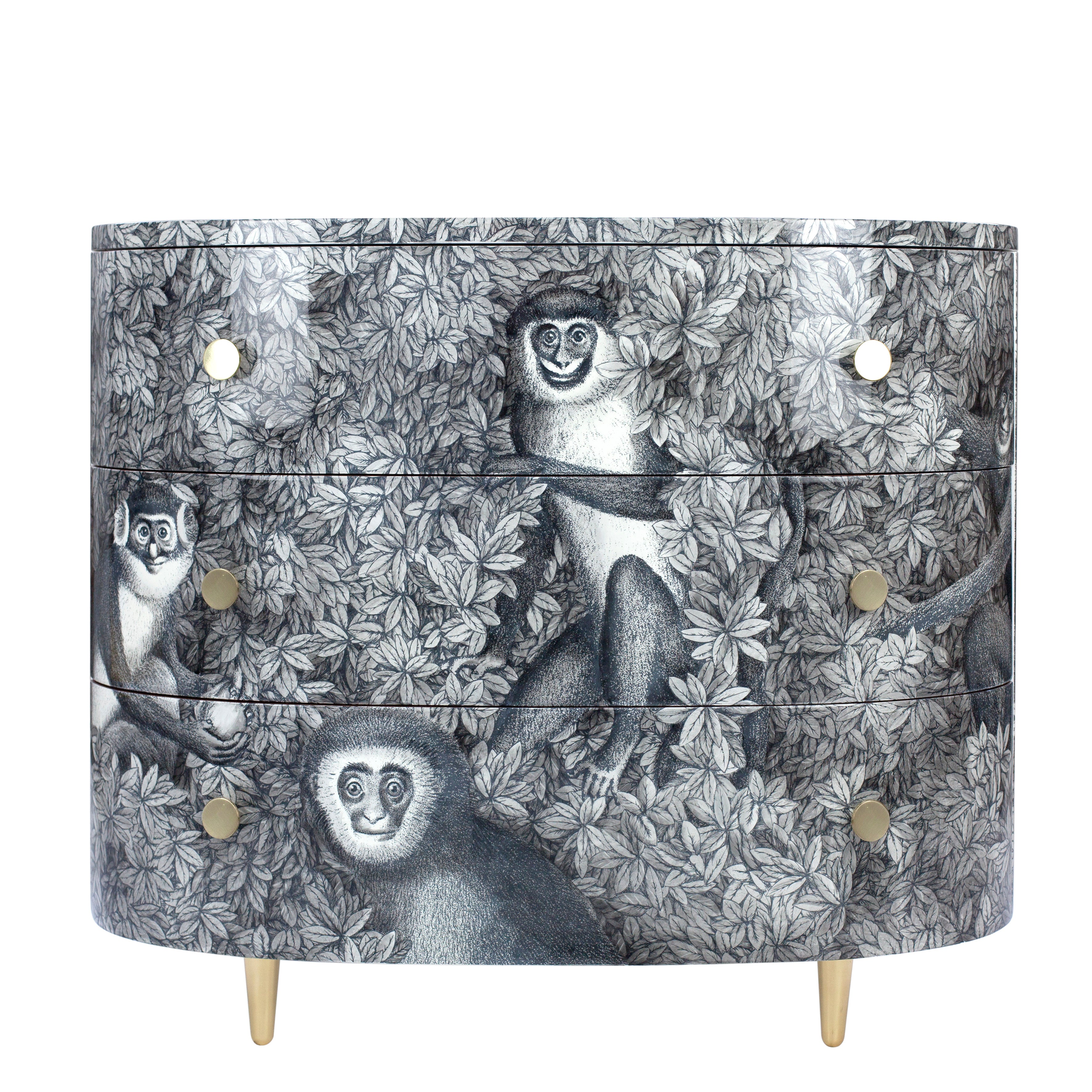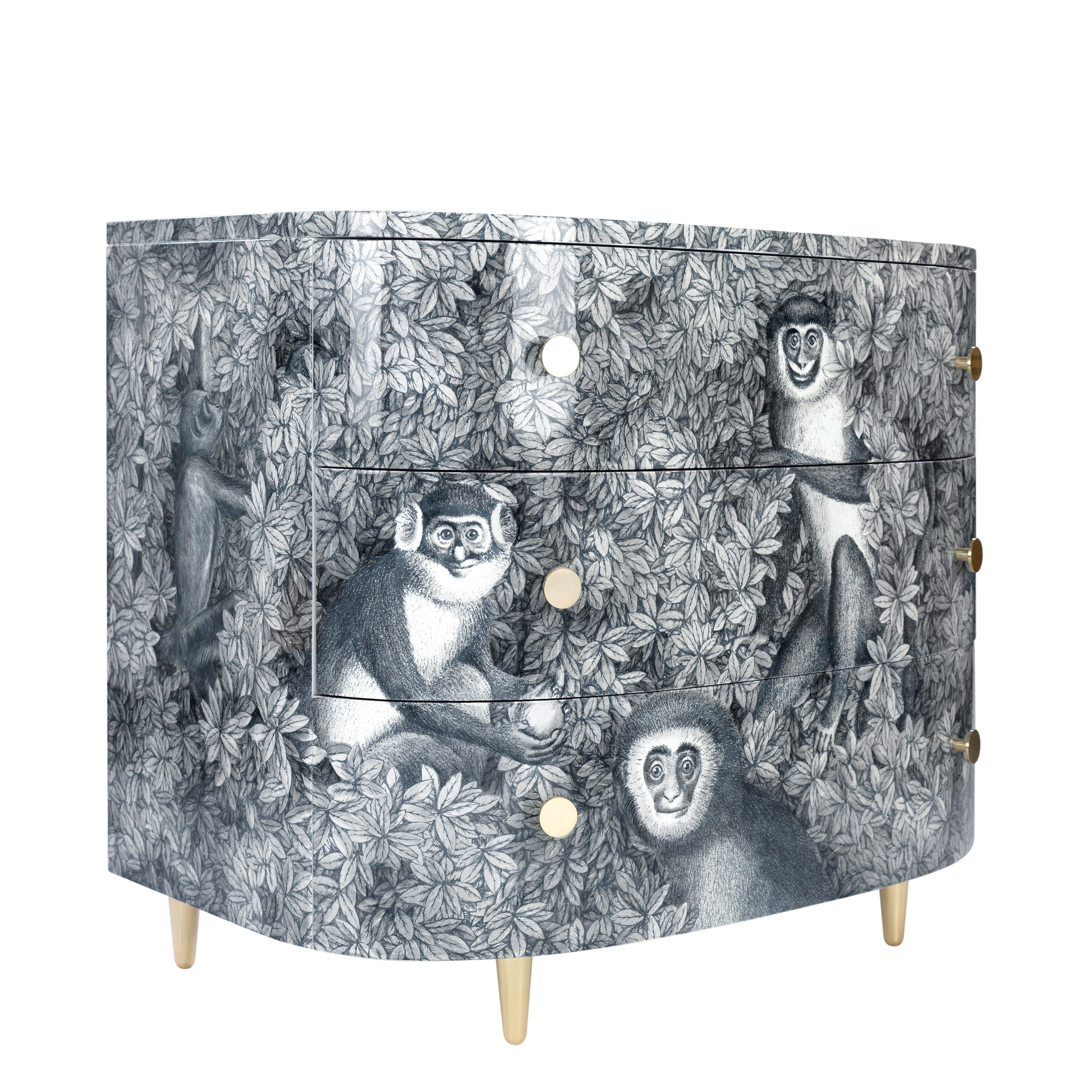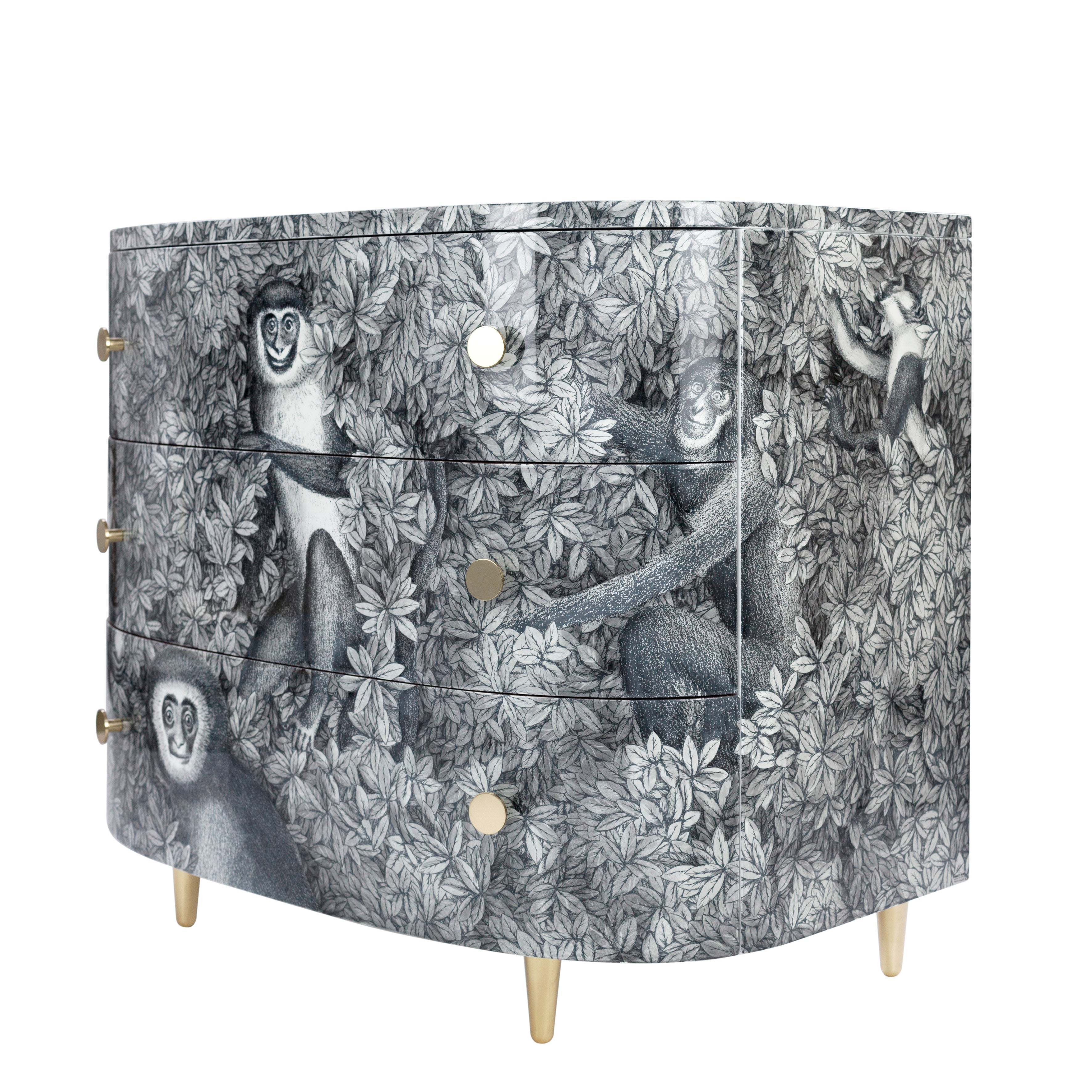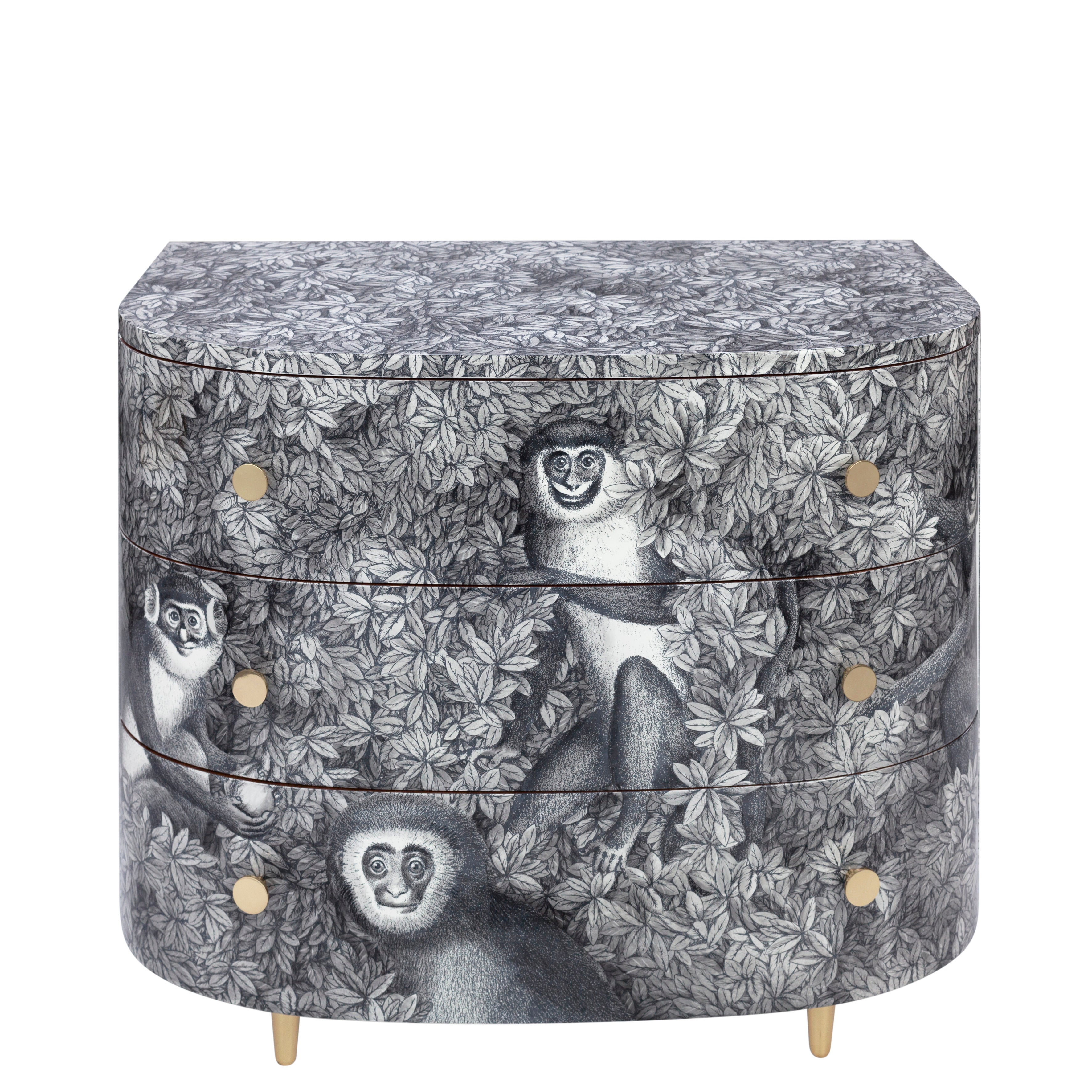Fornasetti Curved chest of drawers Scimmie grey shades - chromed or brass details