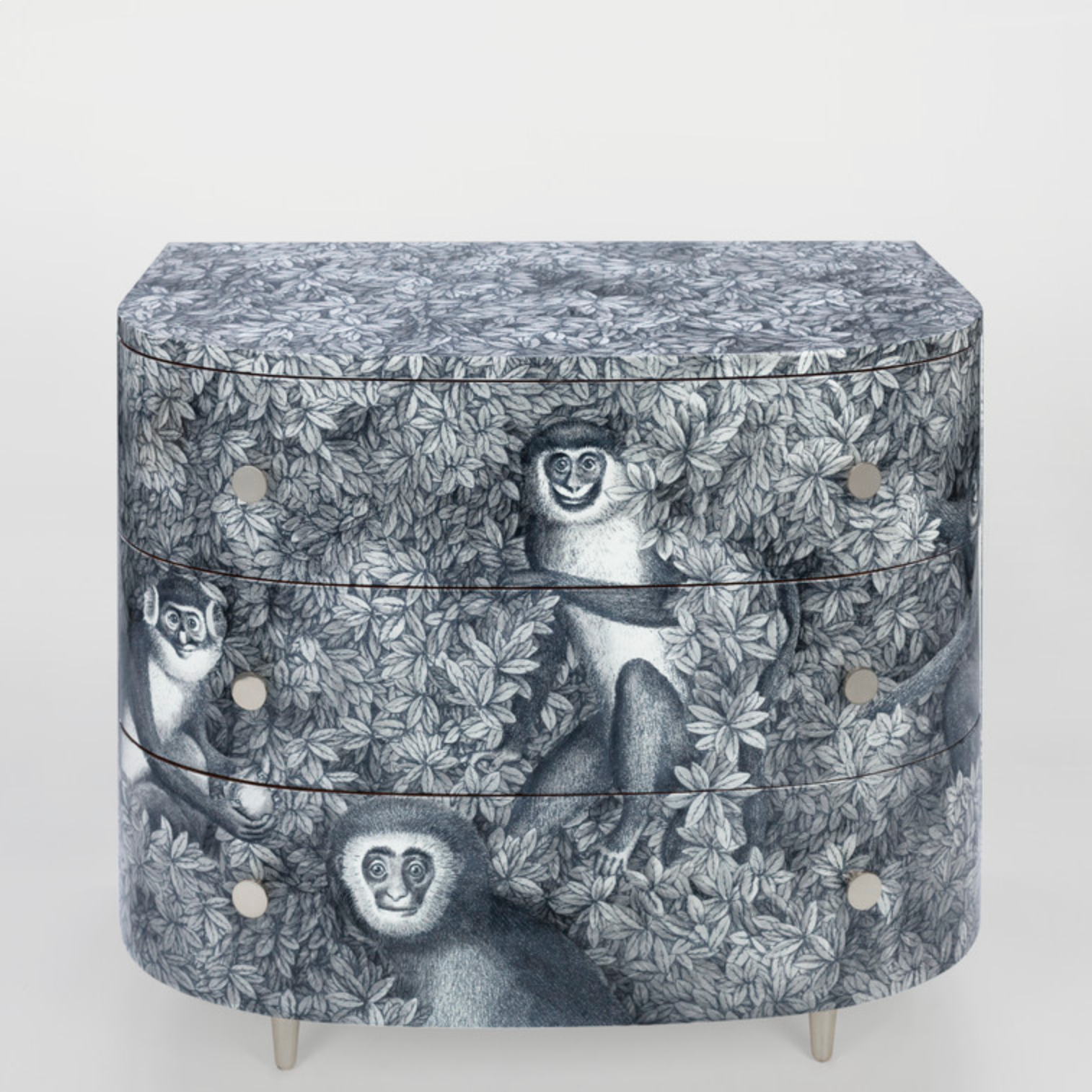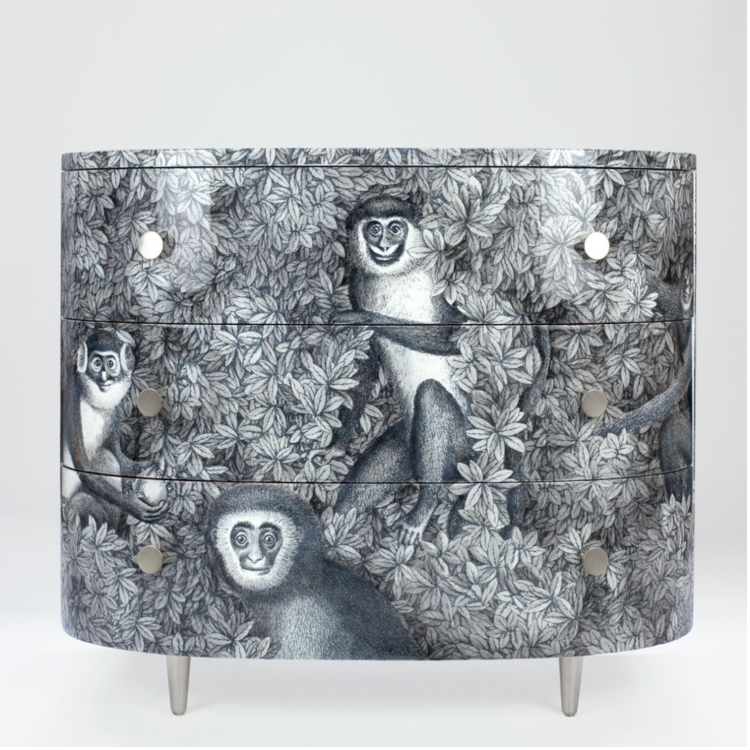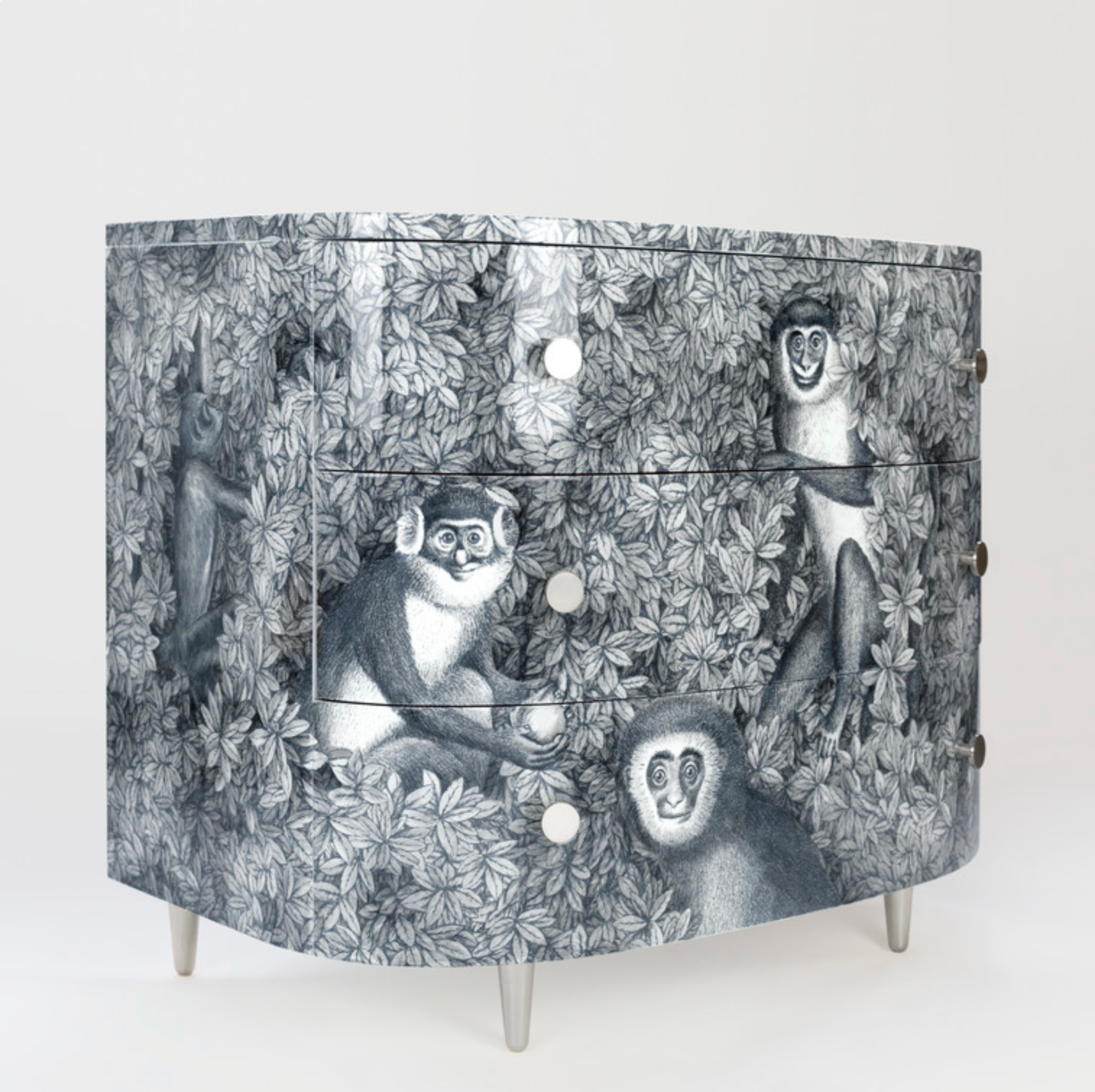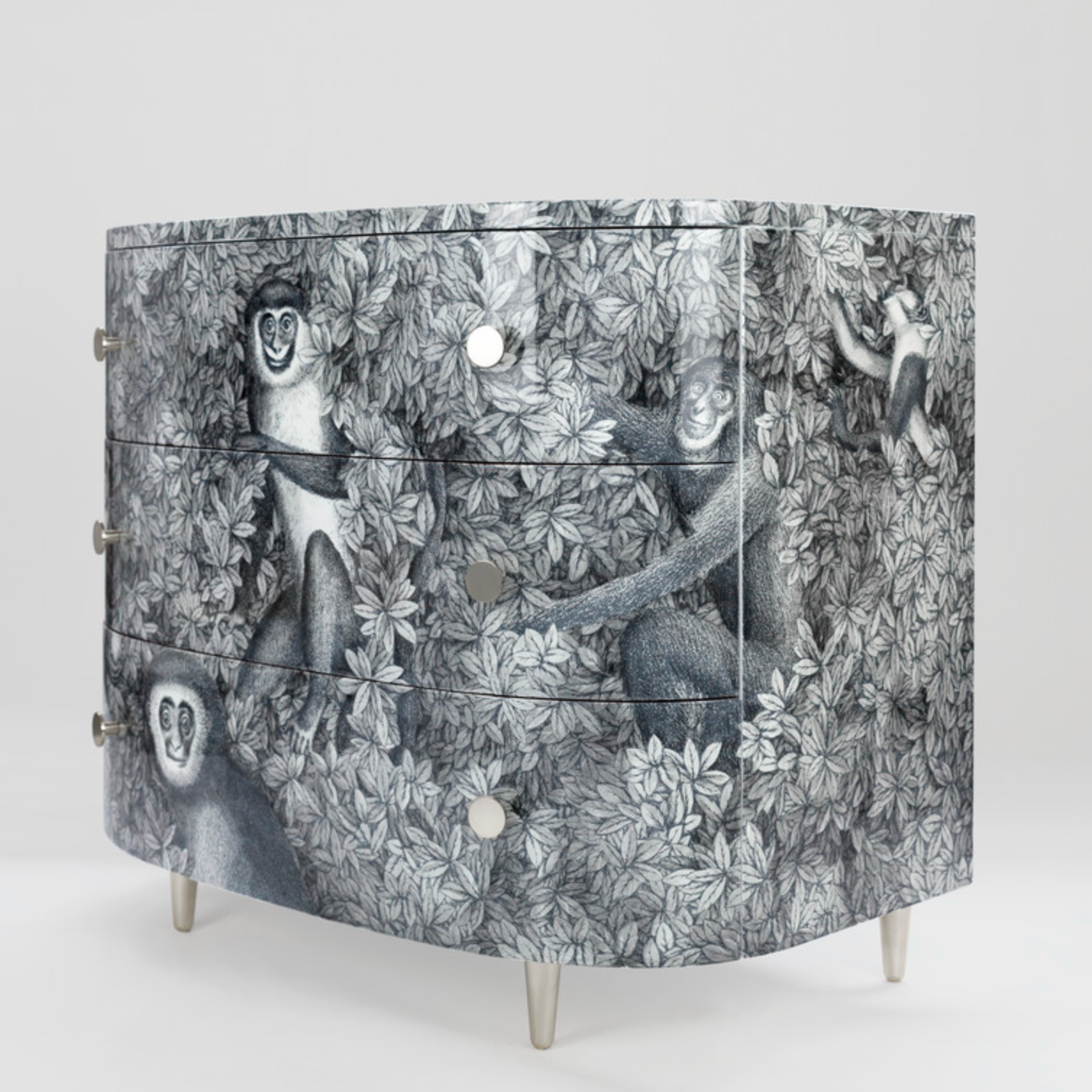 Fornasetti Curved chest of drawers Scimmie grey shades - chromed or brass details
