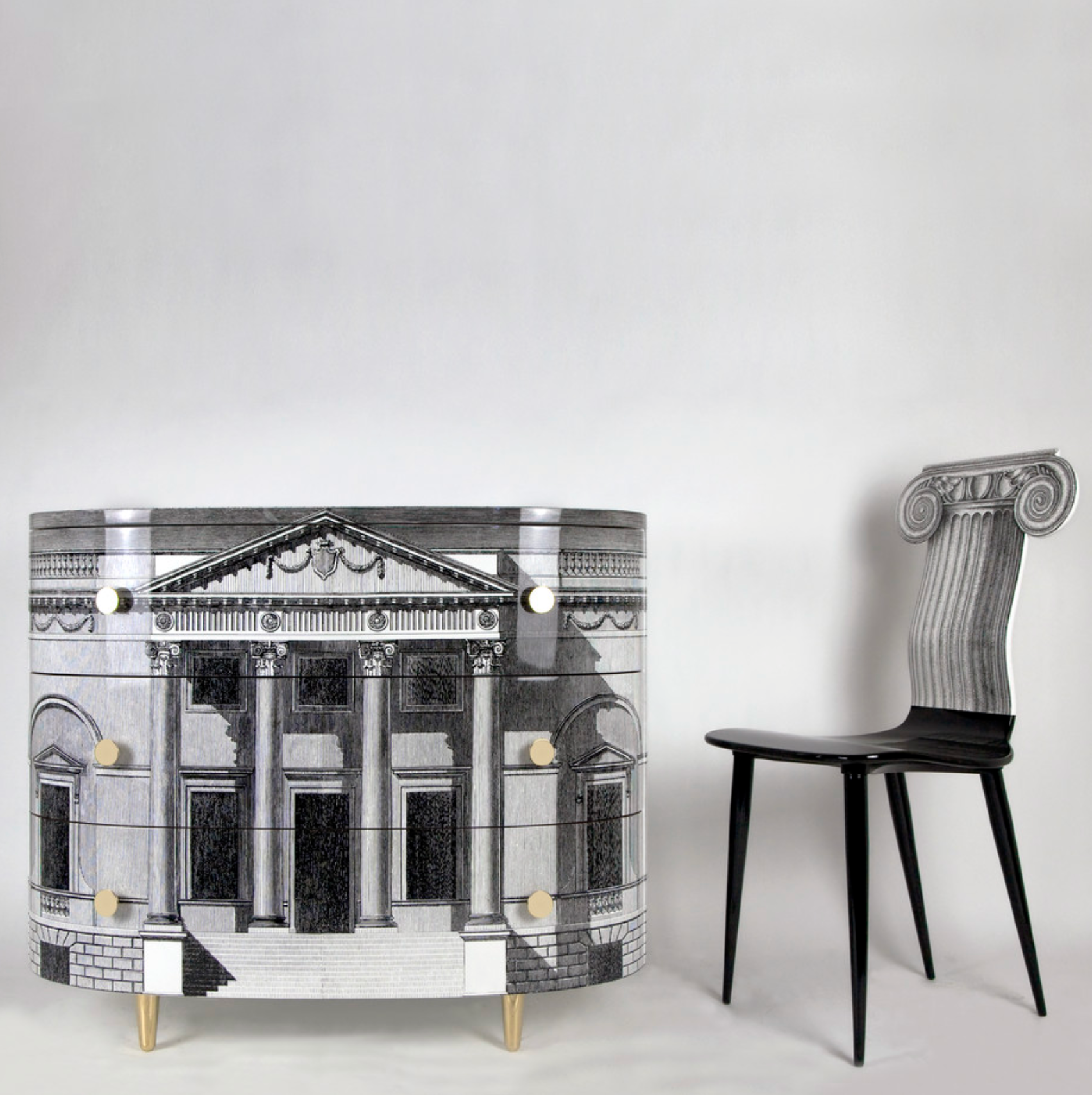 Fornasetti Curved chest of drawers Architettura black/white
