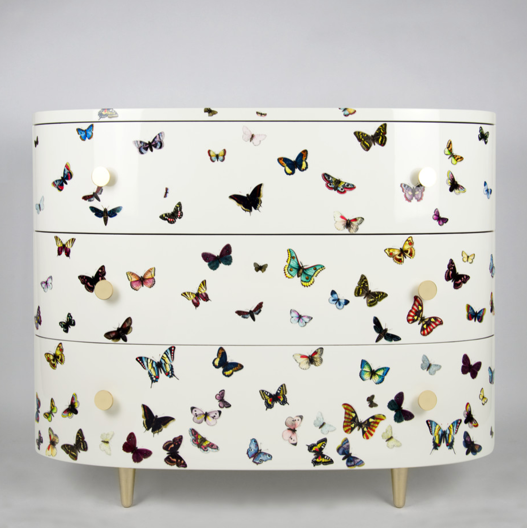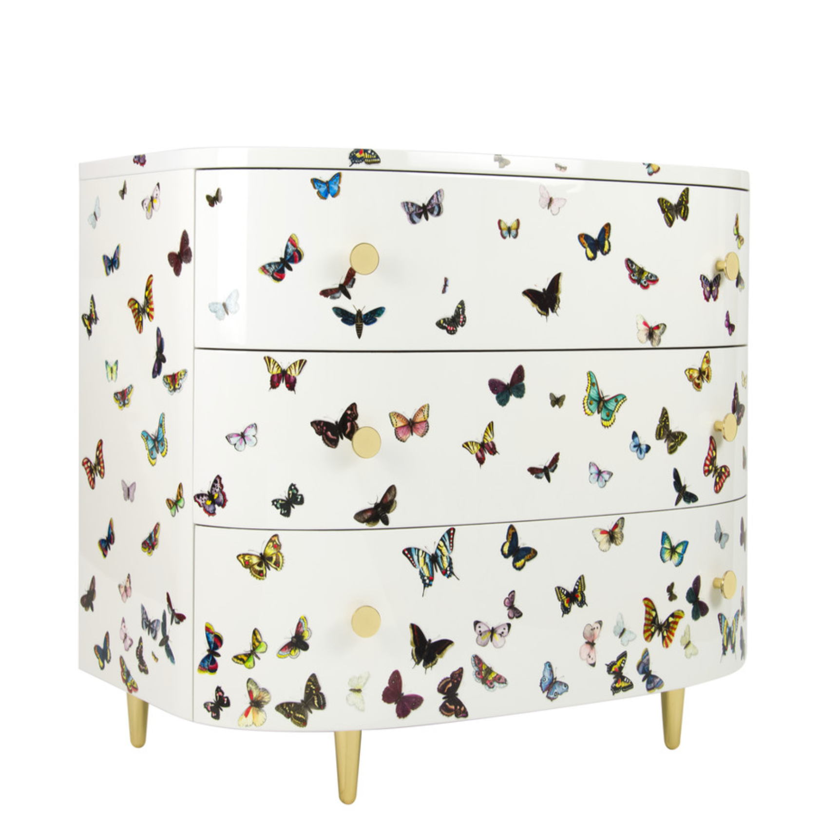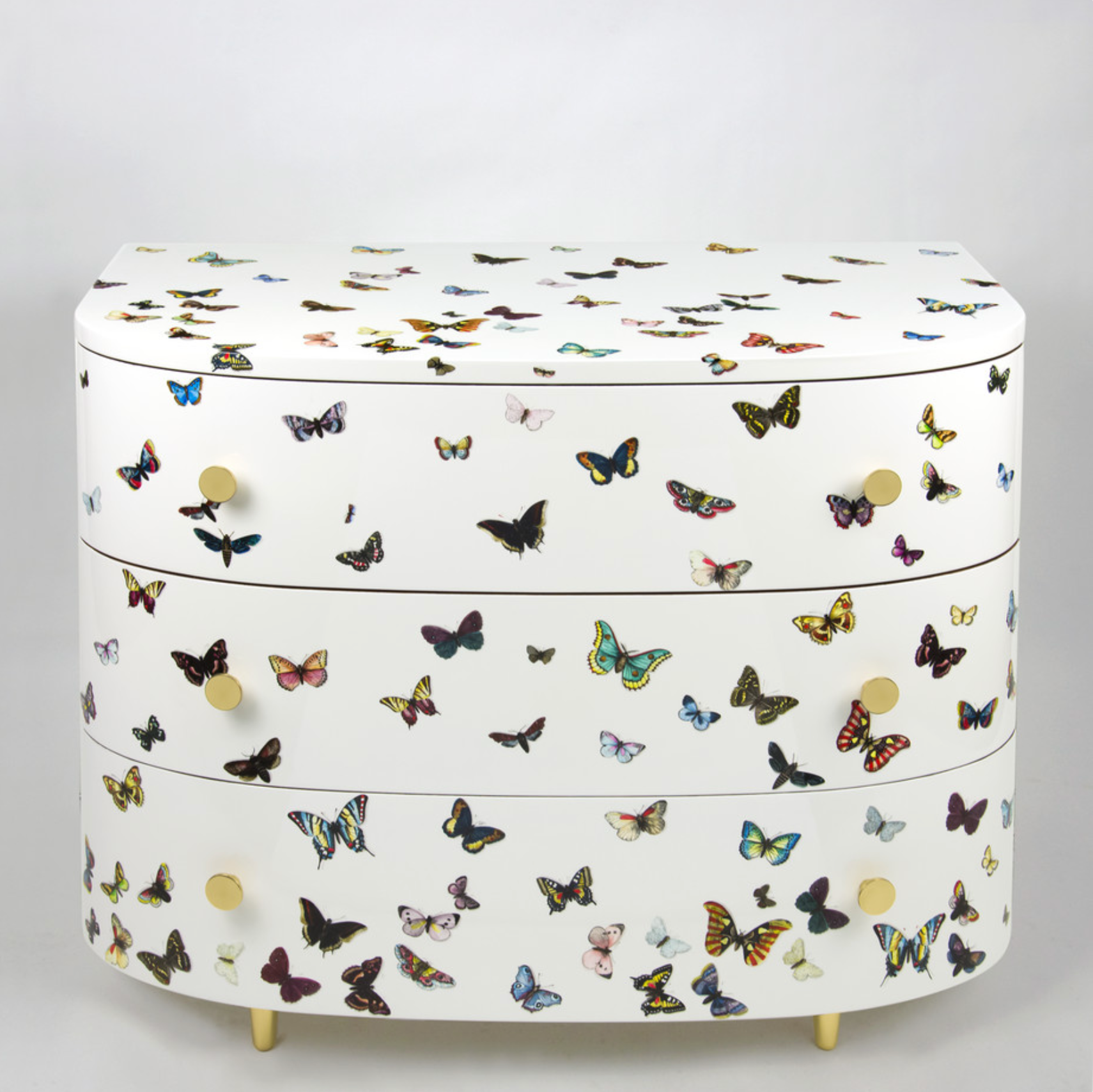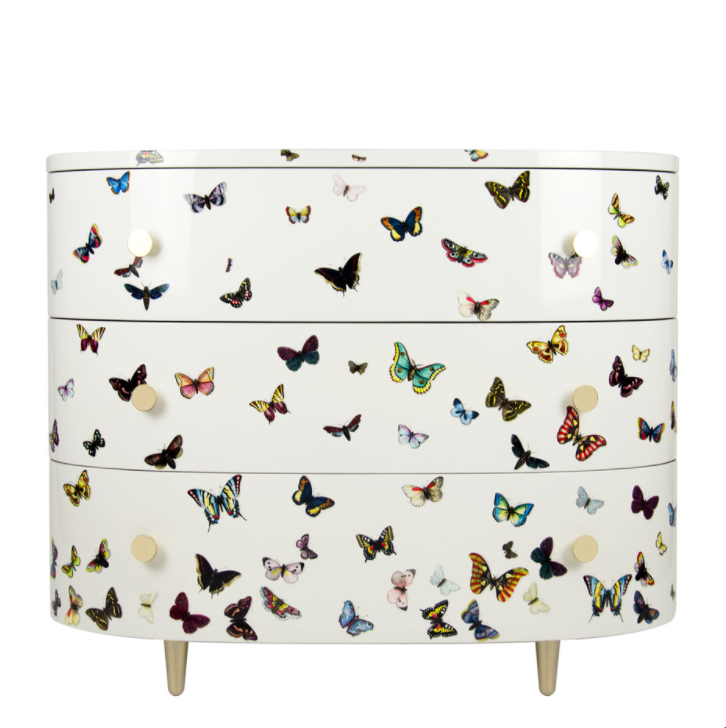 Fornasetti Curved chest of drawers farfalle colour white or black