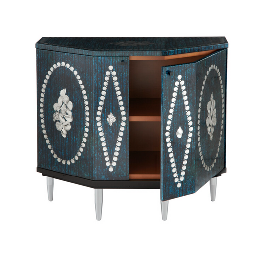 Fornasetti Small cabinet polyhedric Giro di conchiglie silver/ dripped blue