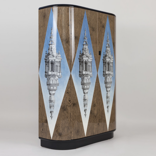 +Fornasetti cabinets are celebrated for their exceptional blend of art and functionality. Designed by Piero Fornasetti and continued by his son Barnaba, these pieces are handcrafted in Italy, using traditional silk-screening and hand-painting techniques. Each cabinet embodies Fornasetti's surrealist and classical motifs, making it more than just furniture—it’s a collectible piece of art that adds elegance and individuality to any room.