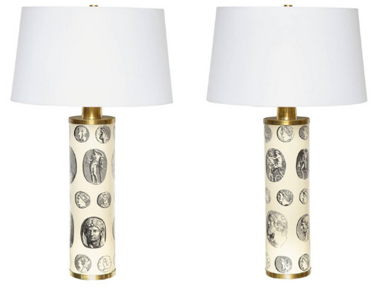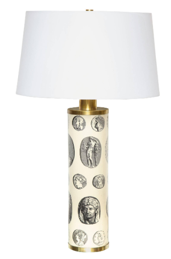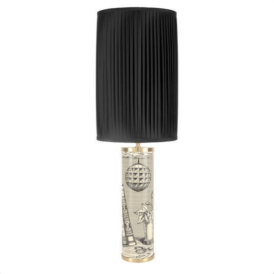 Fornasetti Cylindrical lamp base Libri black on ivory