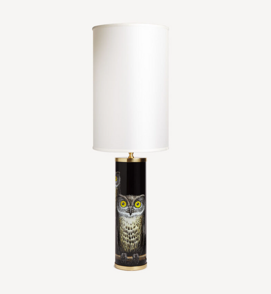 Fornasetti Cylindrical lamp base Civette/Owls colours on black
