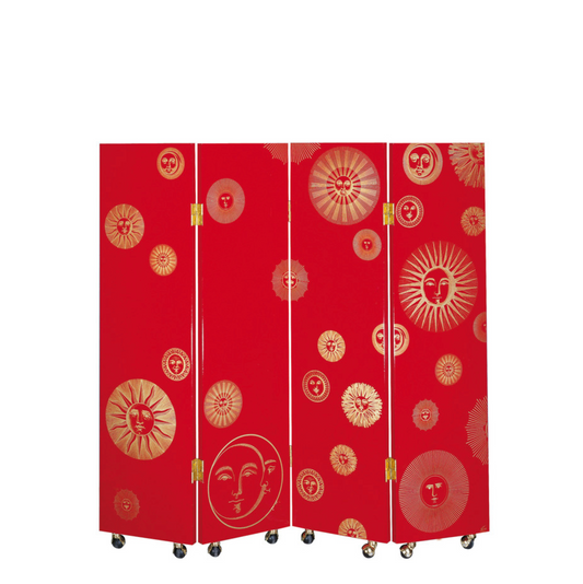 Fornasetti screen 140 x H.135 cm Soli e Lune gold on red