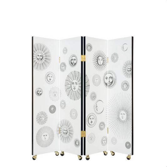 Fornasetti screen 200 x H.205 Soli e Lune (Black\White\Gold) on red