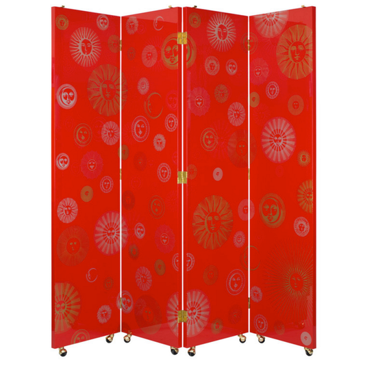Fornasetti screen 140 x H.135 cm Soli e Lune gold on red