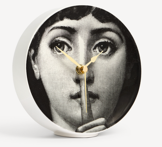 Fornasetti Table clock Silenzio white/black