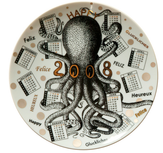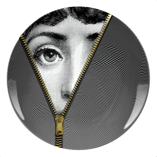 Fornasetti wall plate nr. 7 from the set Eva Black/White/Gold