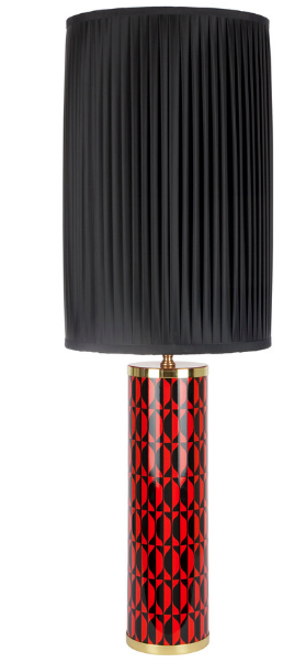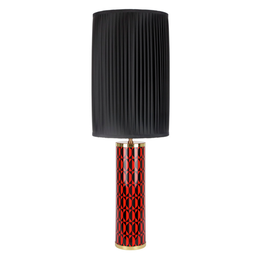 Fornasetti Cylindrical Silk pleated lampshade, black/red