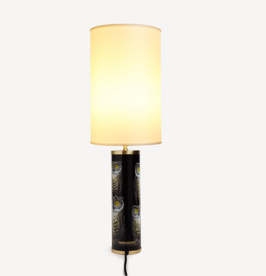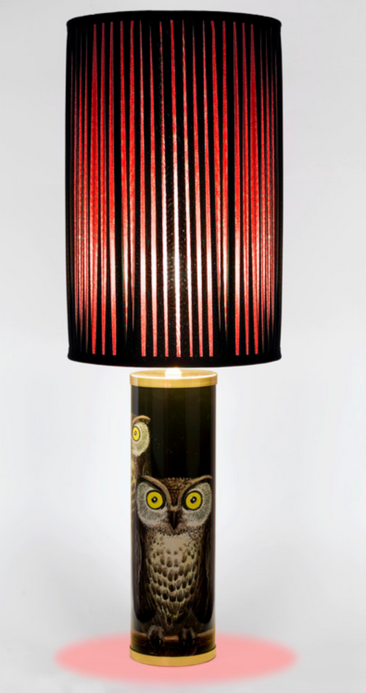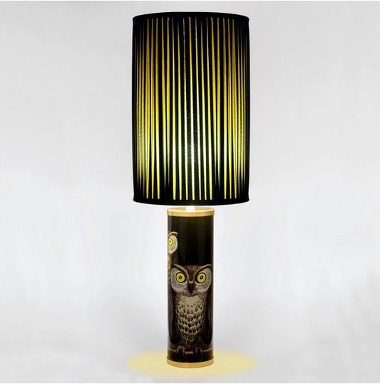 Fornasetti Cylindrical lamp base Civette/Owls colours on black