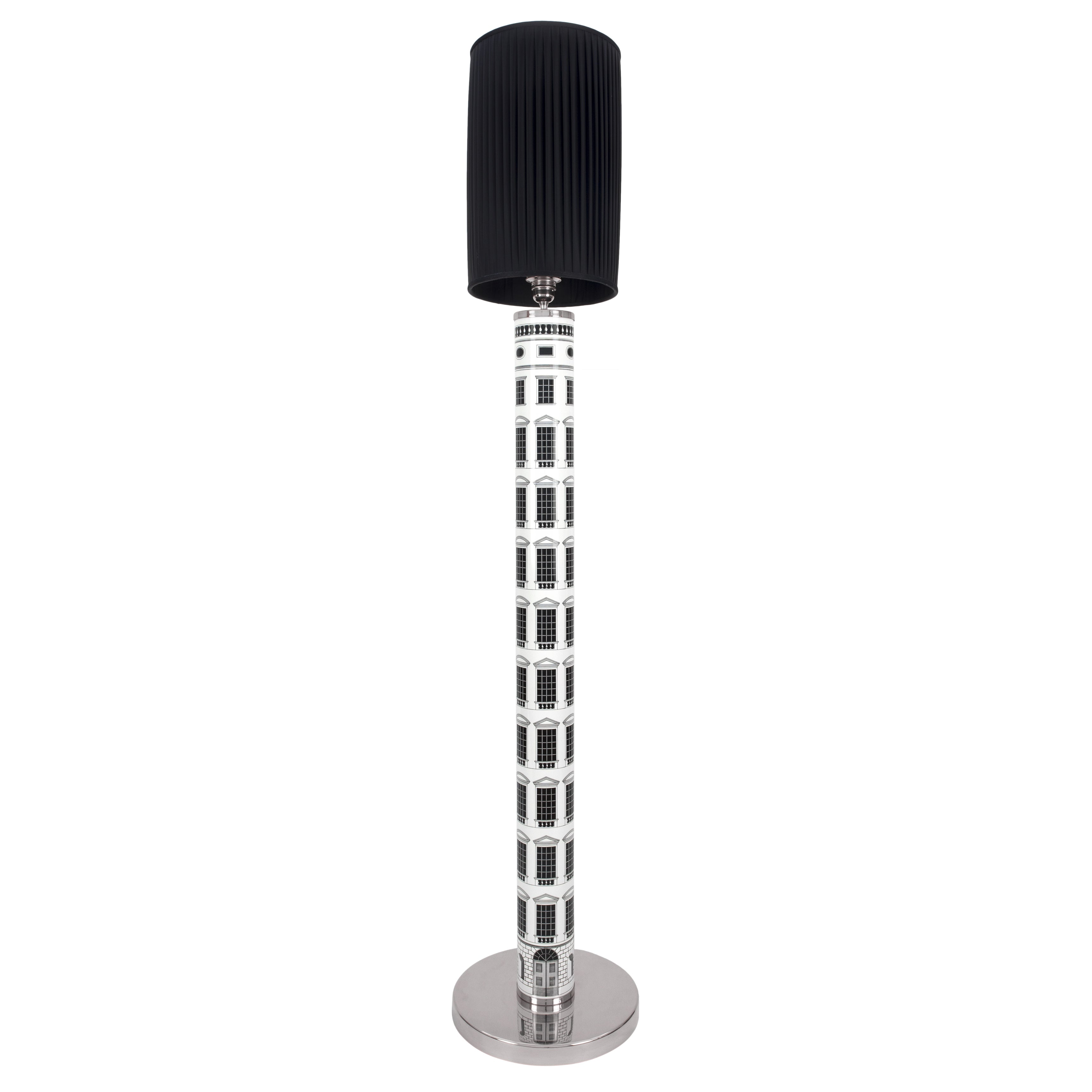 Fornasetti floor lamp Architettura black/white - chromed details