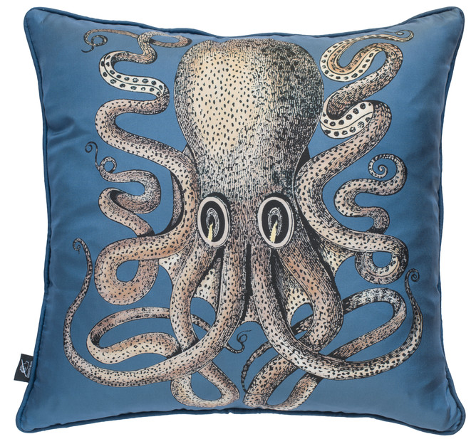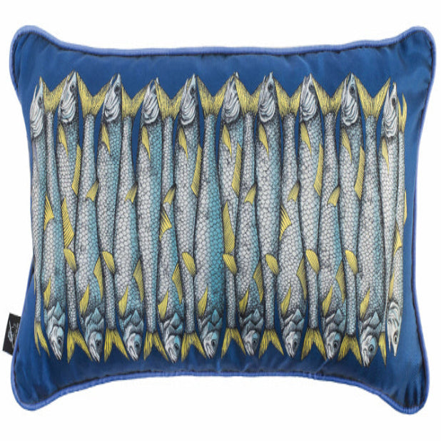 Fornasetti Silk cushion Sardine blue 50x25cm