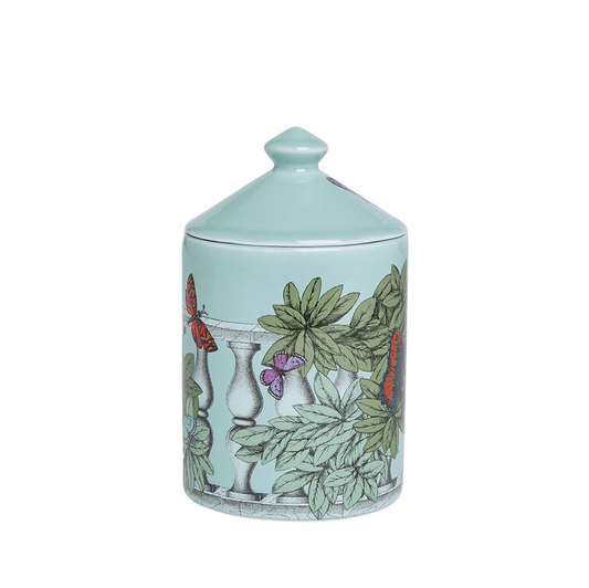 Fornasetti NEL MENTRE large scented candle - Décor Farfalle e balaustra - Fragrance Giardino Segreto