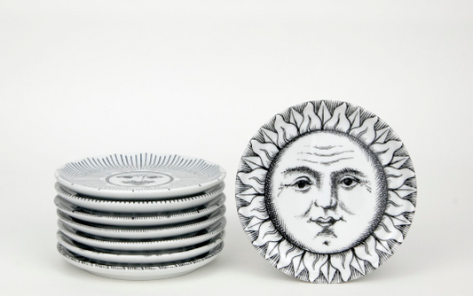 Fornasetti Set 8 coasters Soli e Lune black/white