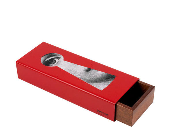 Stylishly store loose trinkets with this Strum Disegno box from Fornasetti. The interior wooden tray is covered by a metal casing which simply slides in and out in order to store jewellery, stationery or to tidy loose odds and ends. Printed, painted and lacquered with a stationery design, this makes a great gift idea for the designer enthusiast. Expertly handcrafted in Italy, each piece has been created using the rigorous techniques deployed in the brand’s very first designs made by Piero Fornasetti himself, a tradition which has been revived and continued by his son Barnaba.