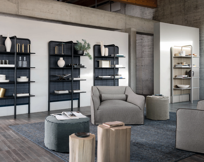Family of cylindrical poufs, Brick 18/19 are available in two heights. The padded structure in polyurethane foam, which accentuates their softness, has a removable cover embellished by the visible stitching that outlines the edges.