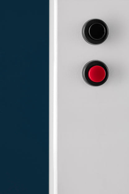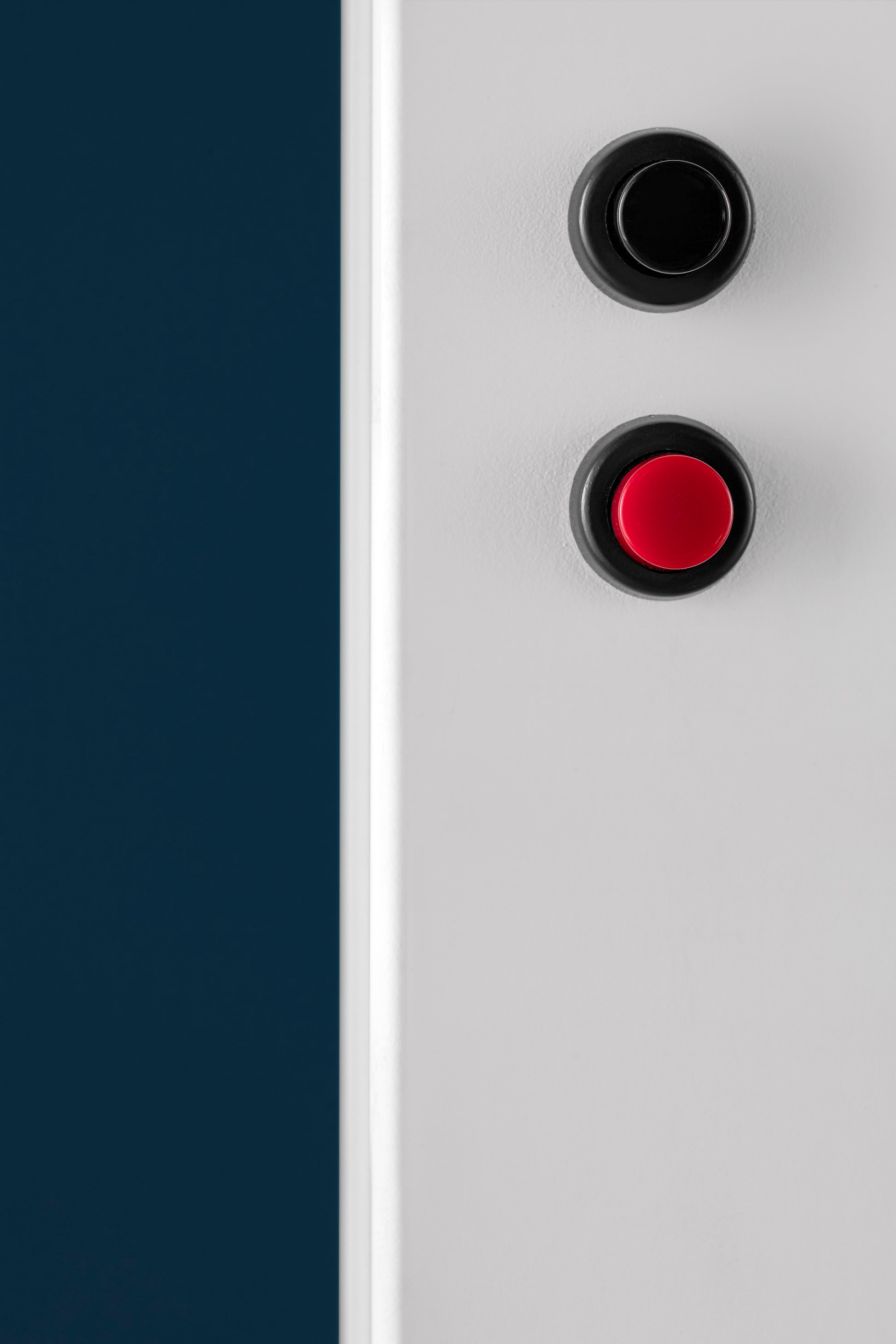 push dimmer (red button – COB LED directed downwards) / on/off (black button – LED with dichroic filter directed upwards)