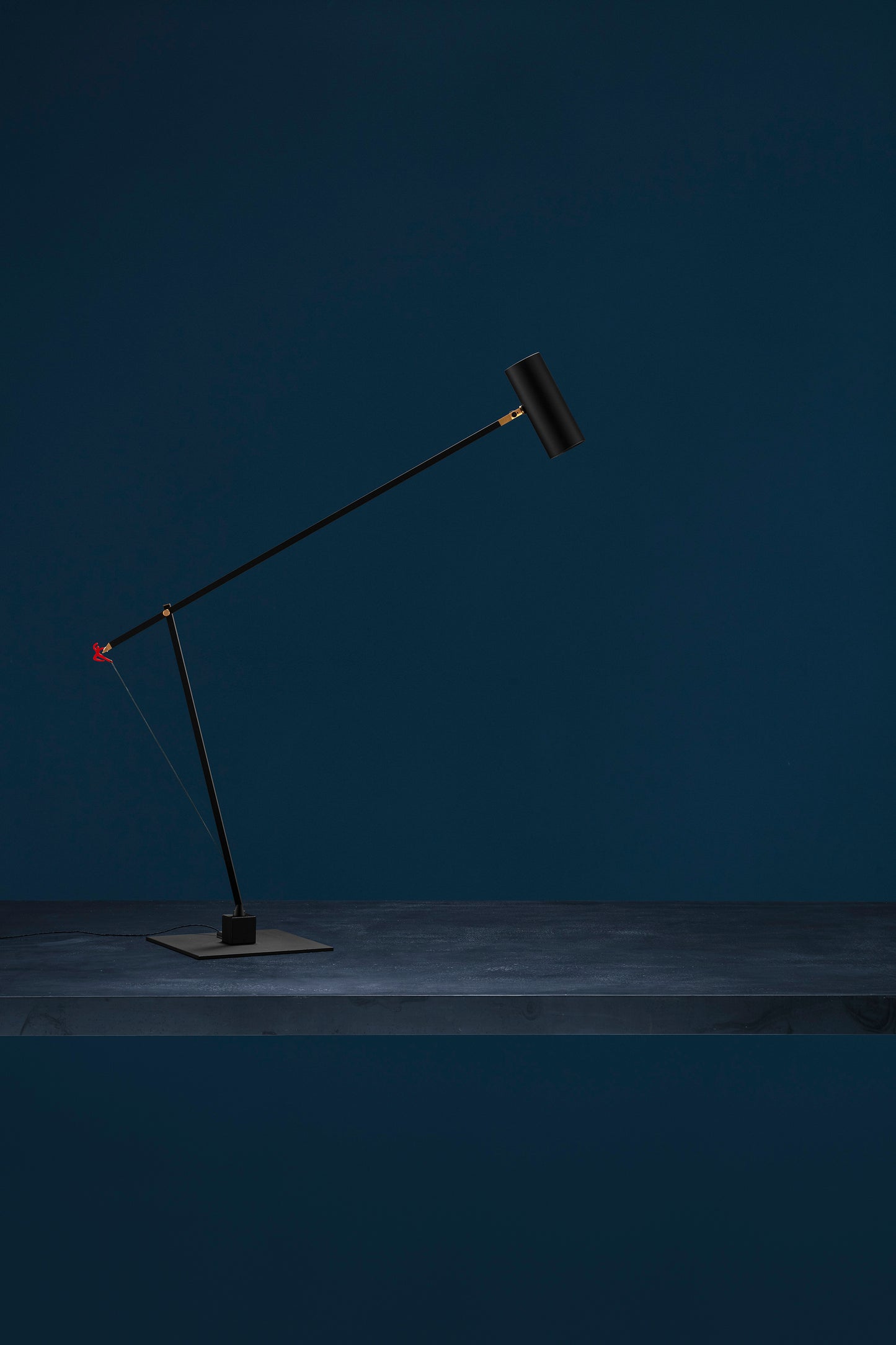 -black base and structure / red man silhouette / brass details / nickel dimmer / black wire