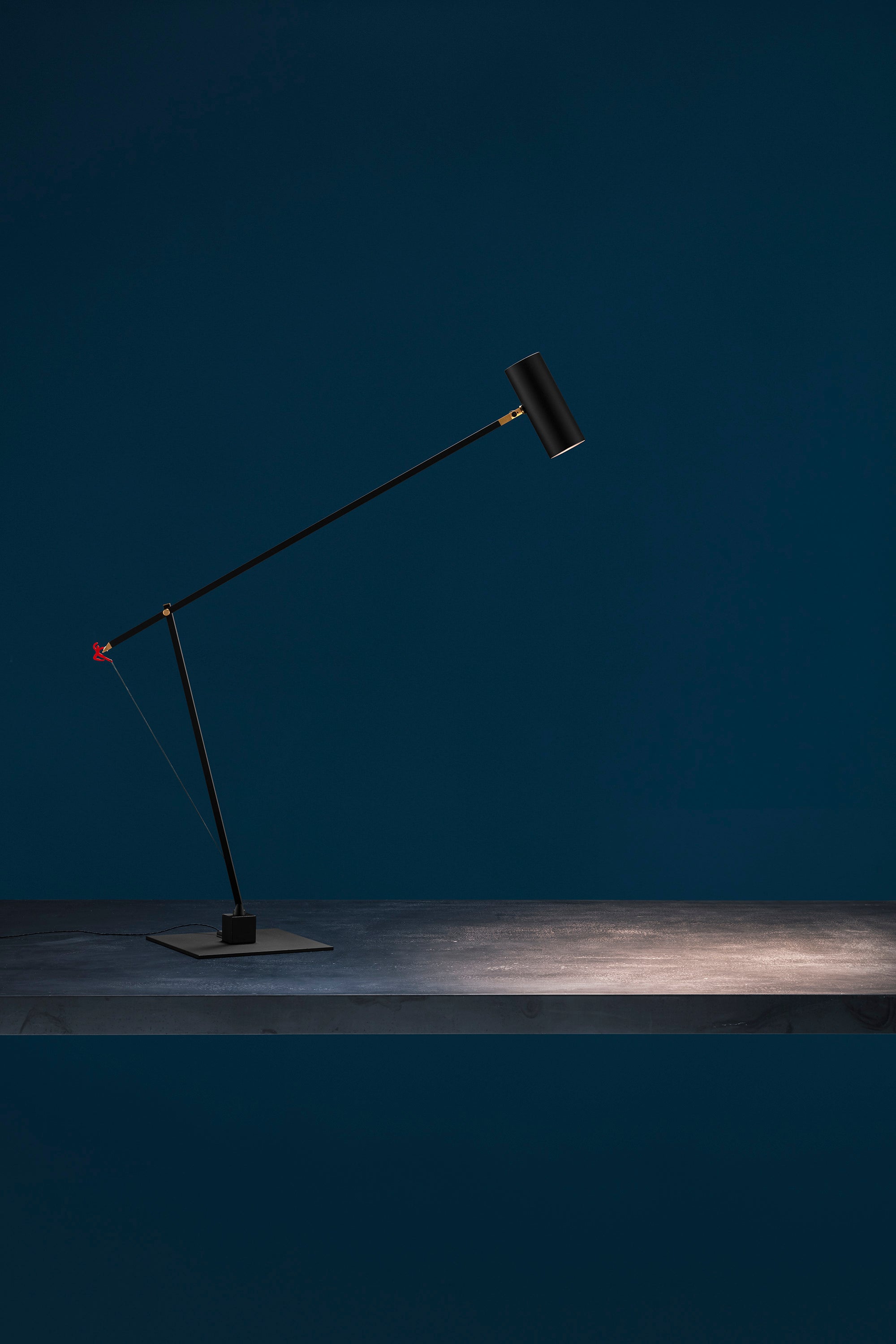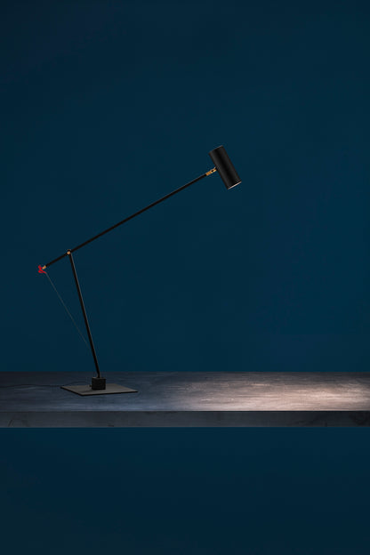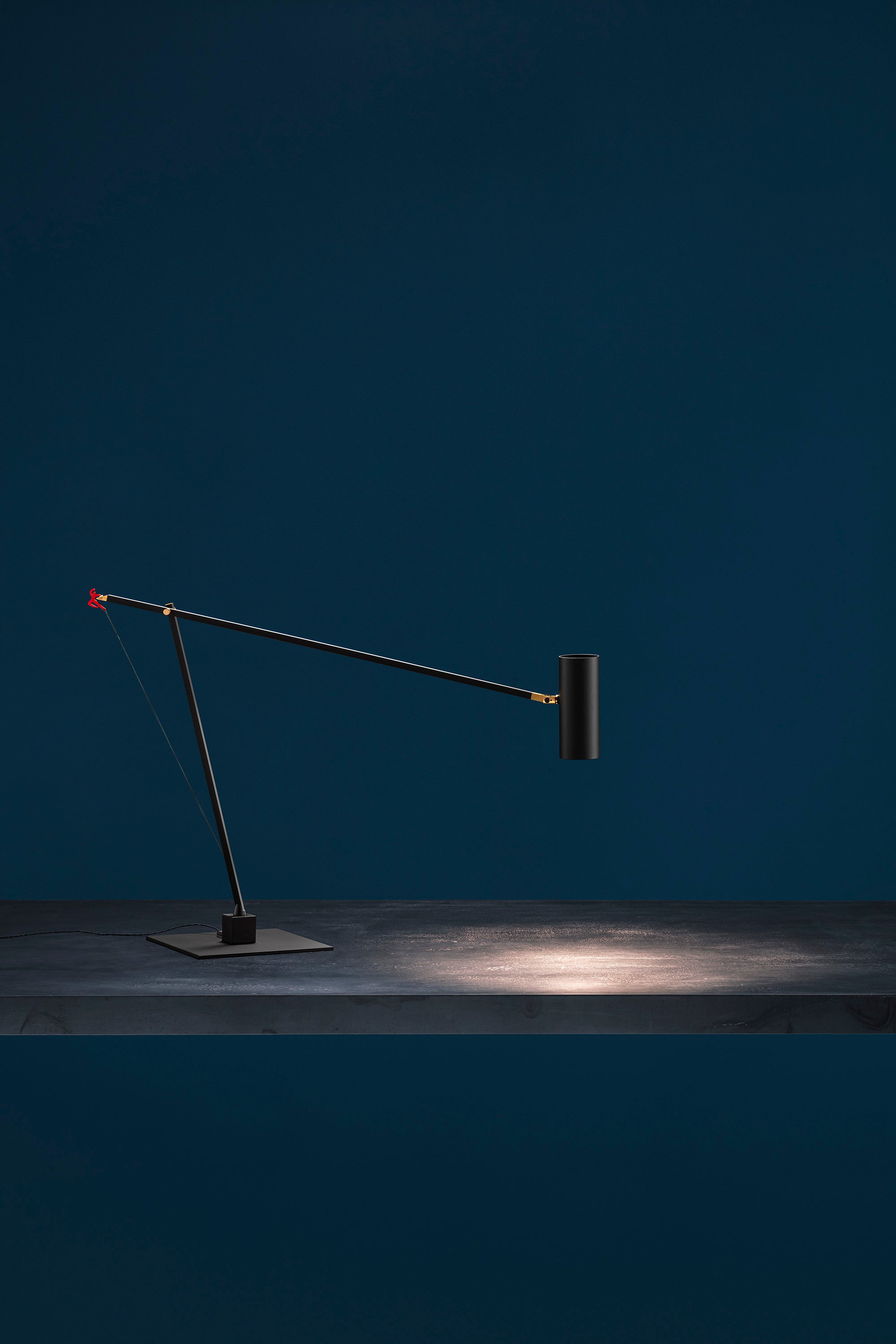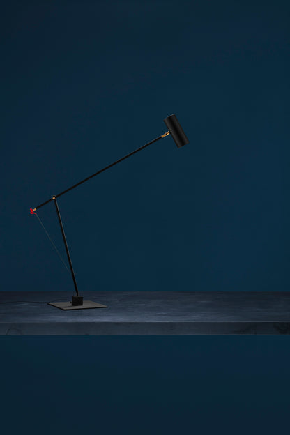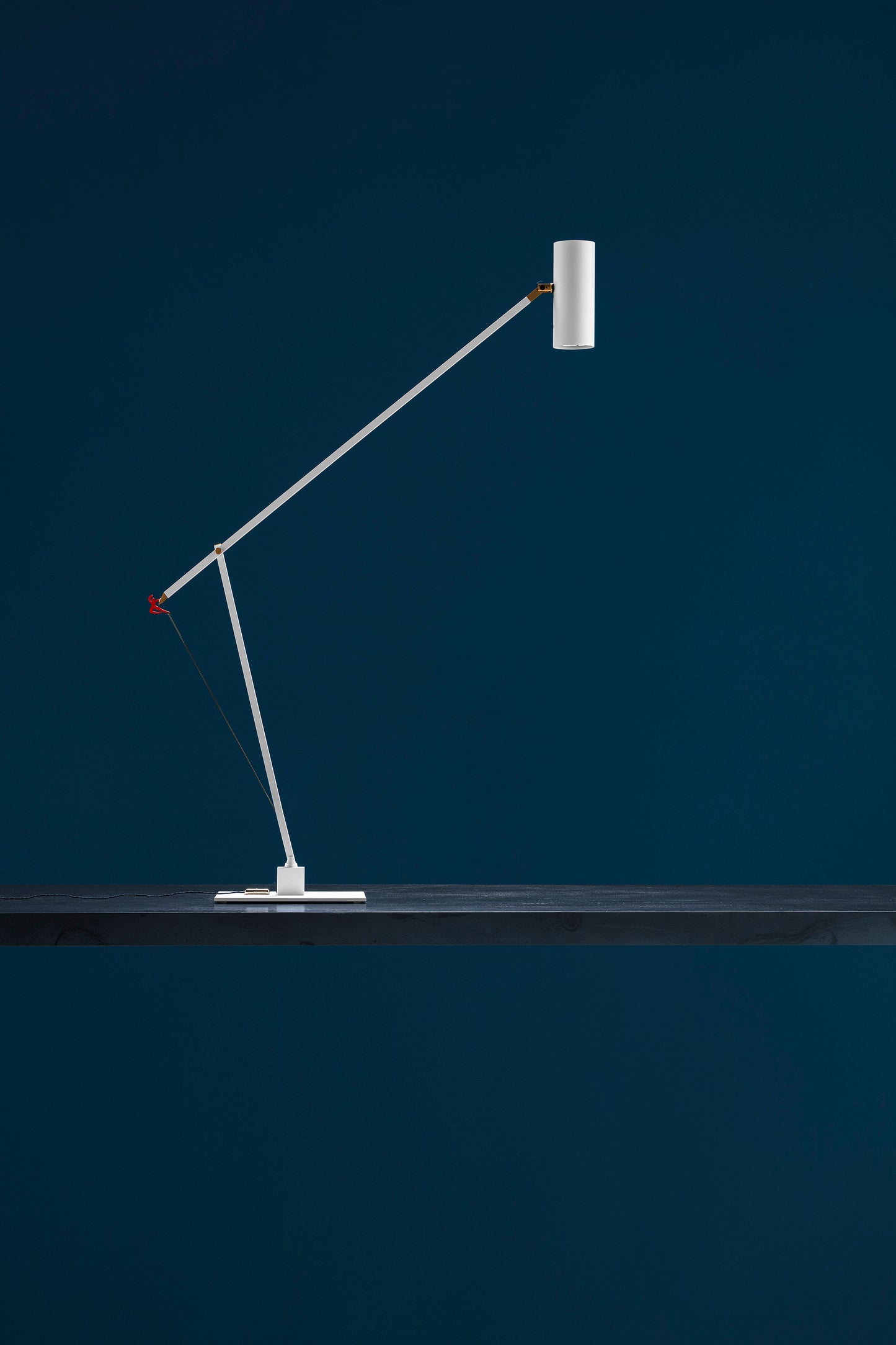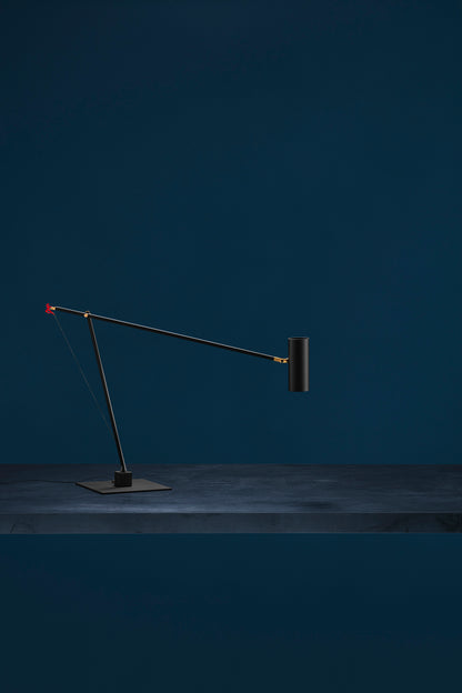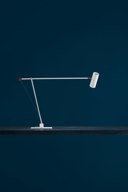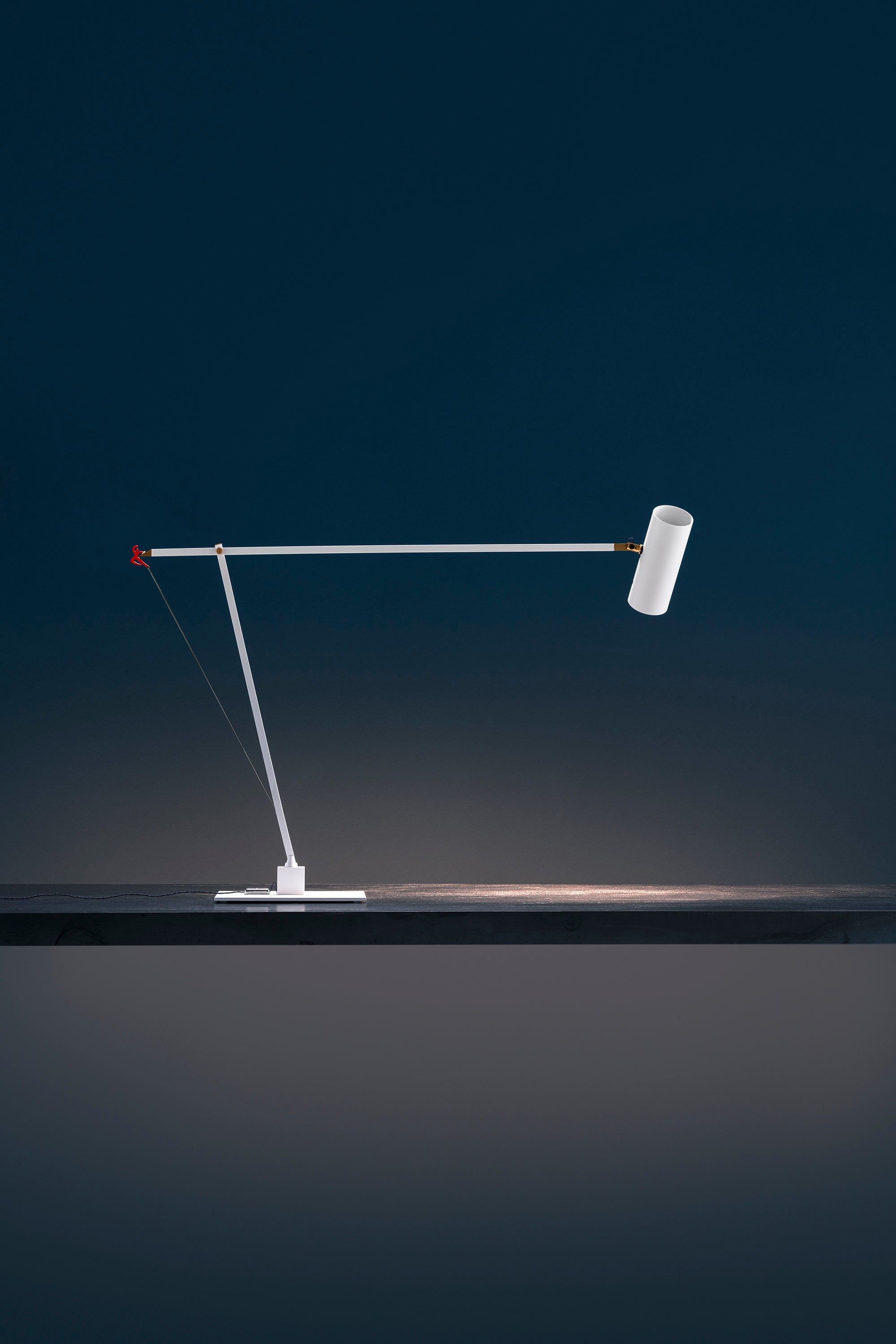 In 2004, colour became part of our catalogue for the first time, with the PostKrisi collection. Colour was used as a message of rebirth and joy. Today, that colour is back.” Also available in the classic black and white finishes, the “colourful” versions of the Ettorino lamps feature an elegant combination of primary colours, mixing blue, yellow and red. Preceded by the development of an innovative patented system, these new articulated lamps are characterised by a simple, rigorous design featuring surprising details. The signature feature of all the lamps is a functional detail in the shape of a red, dancing figure. Ettorino T has been designed as a desk lamp, to offer suitable lighting for work surfaces thanks to the possibility to move and rotate it.