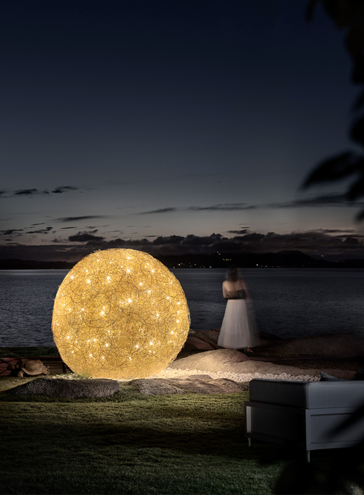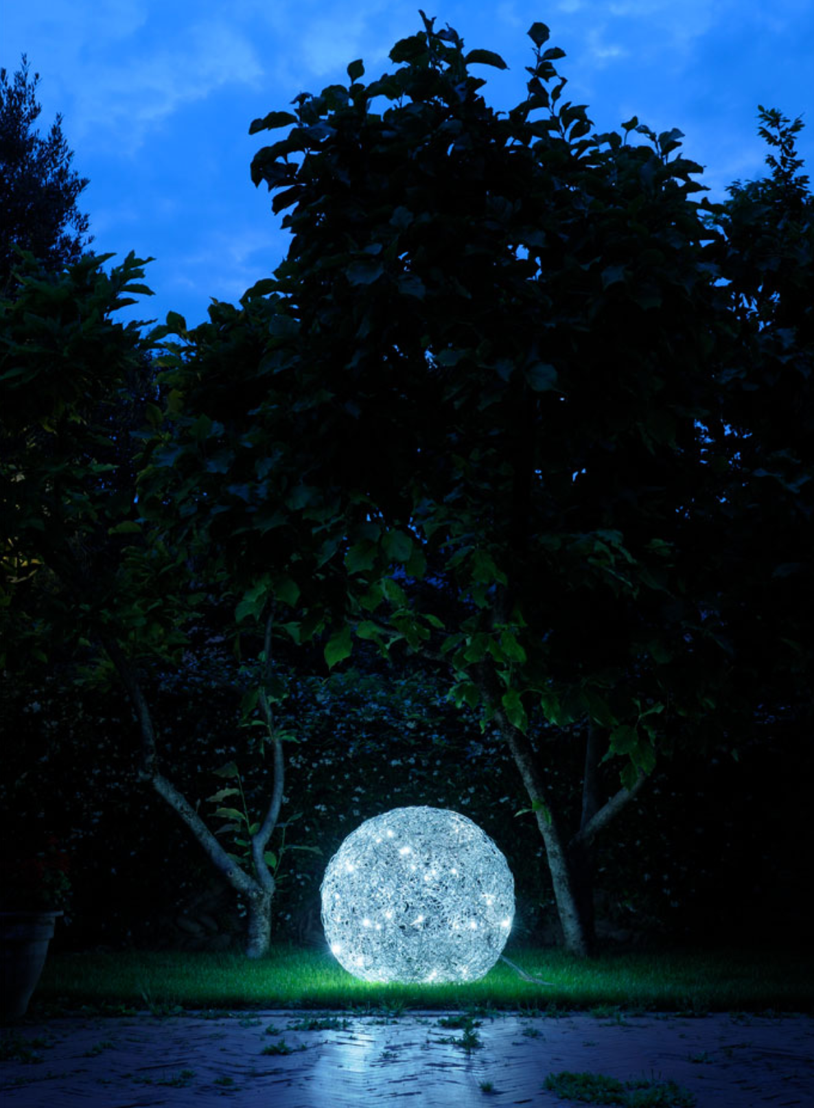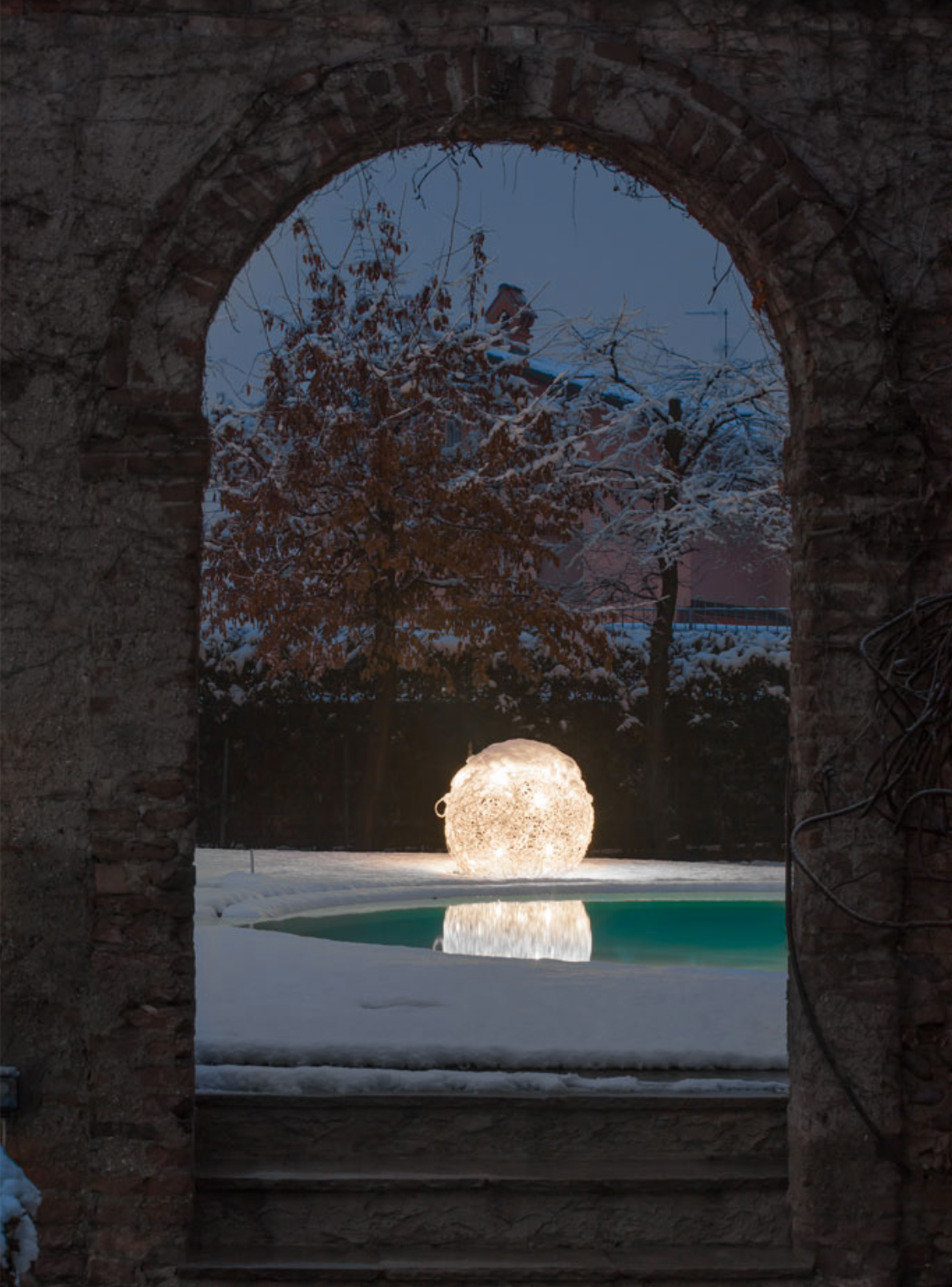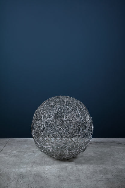 Fil de Fer is a lighting fixture made of shaped, woven aluminium wire, which is lit on the inside by tiny bulbs. Designed and made by Enzo Catellani, it is the creation closest to his heart. Developed almost twenty years ago for a special commission, it was never used for that particular project and was hung up in his workshop. Each time it was switched on, it enchanted everyone with its special, magical atmosphere. Enzo Catellani decided then to continue working on it. The lamp was later placed on the market and quickly became the most iconic lighting fixture in the Catellani & Smith range.