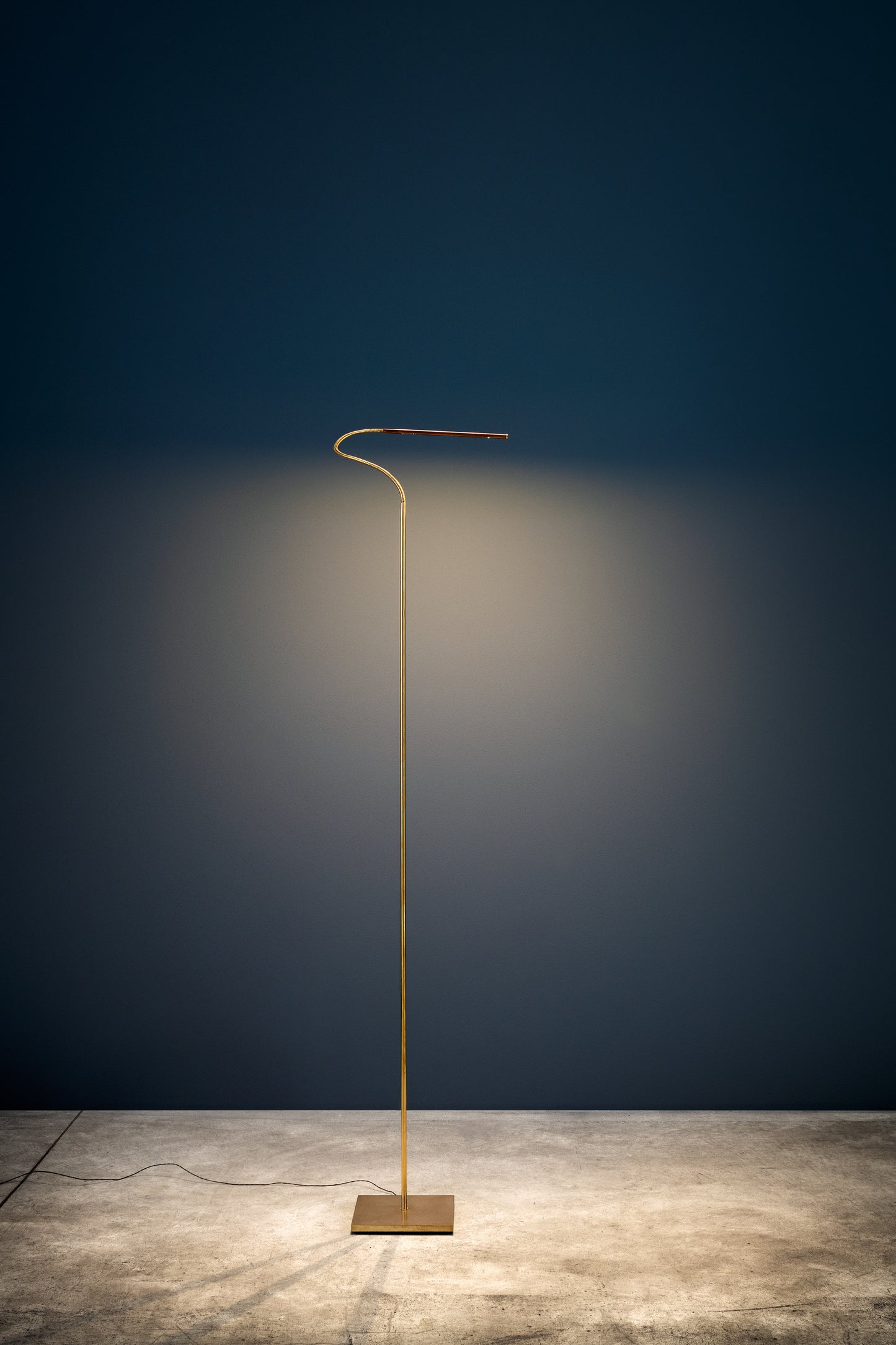 Lola is discreet and practical. Its inconspicuous presence places the emphasis on light, directing it exactly where needed. Hand crafted entirely in brass, it is available as a floor or table lamp. With minimal design, Lola is the essence of light.