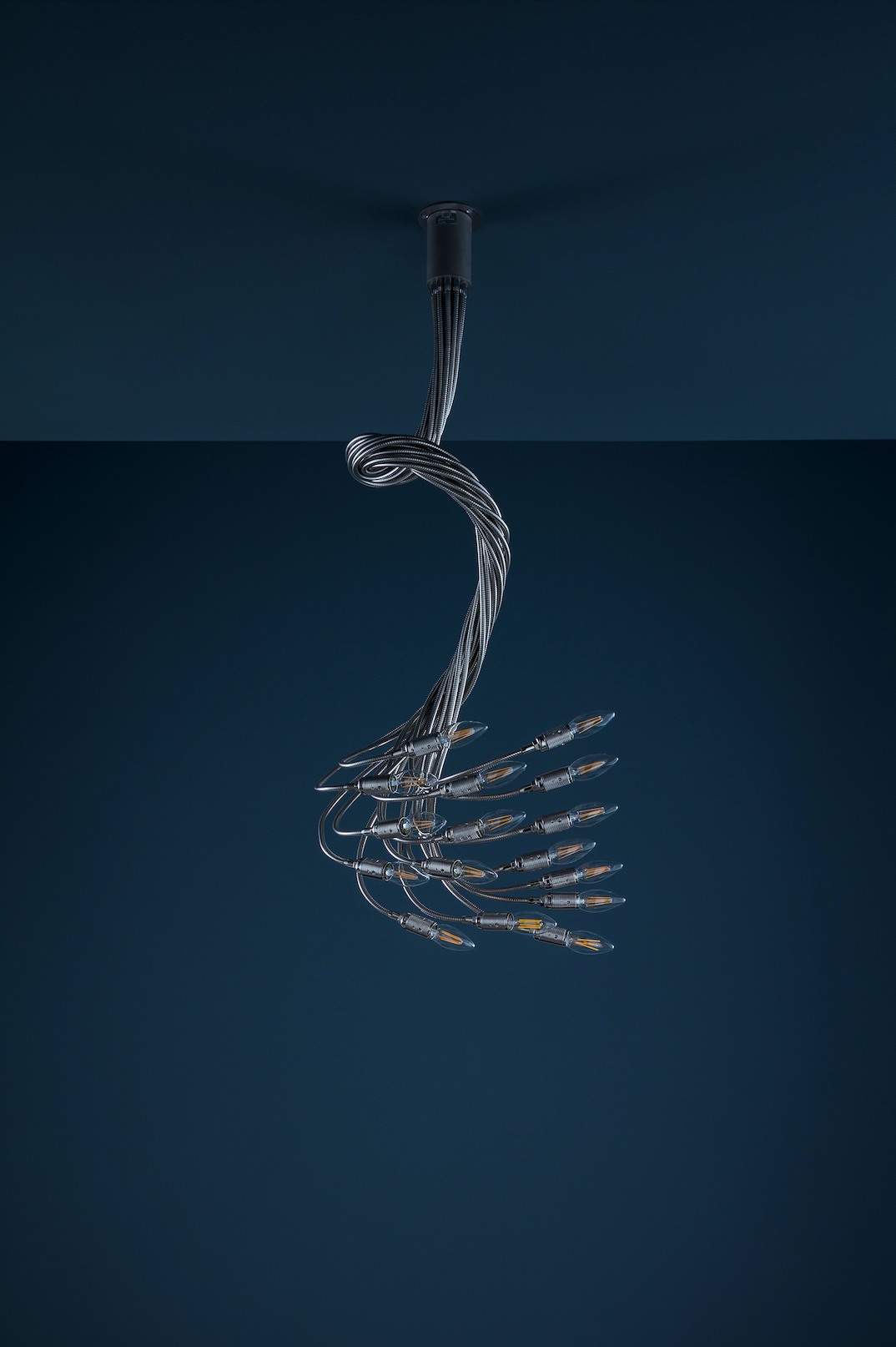 The Turciù series, the first designed by Catellani, takes its name from the fact that you can twist and shape the flexible arms of these lamps as you wish, making the most of the ability to interact with this lighting fixture.