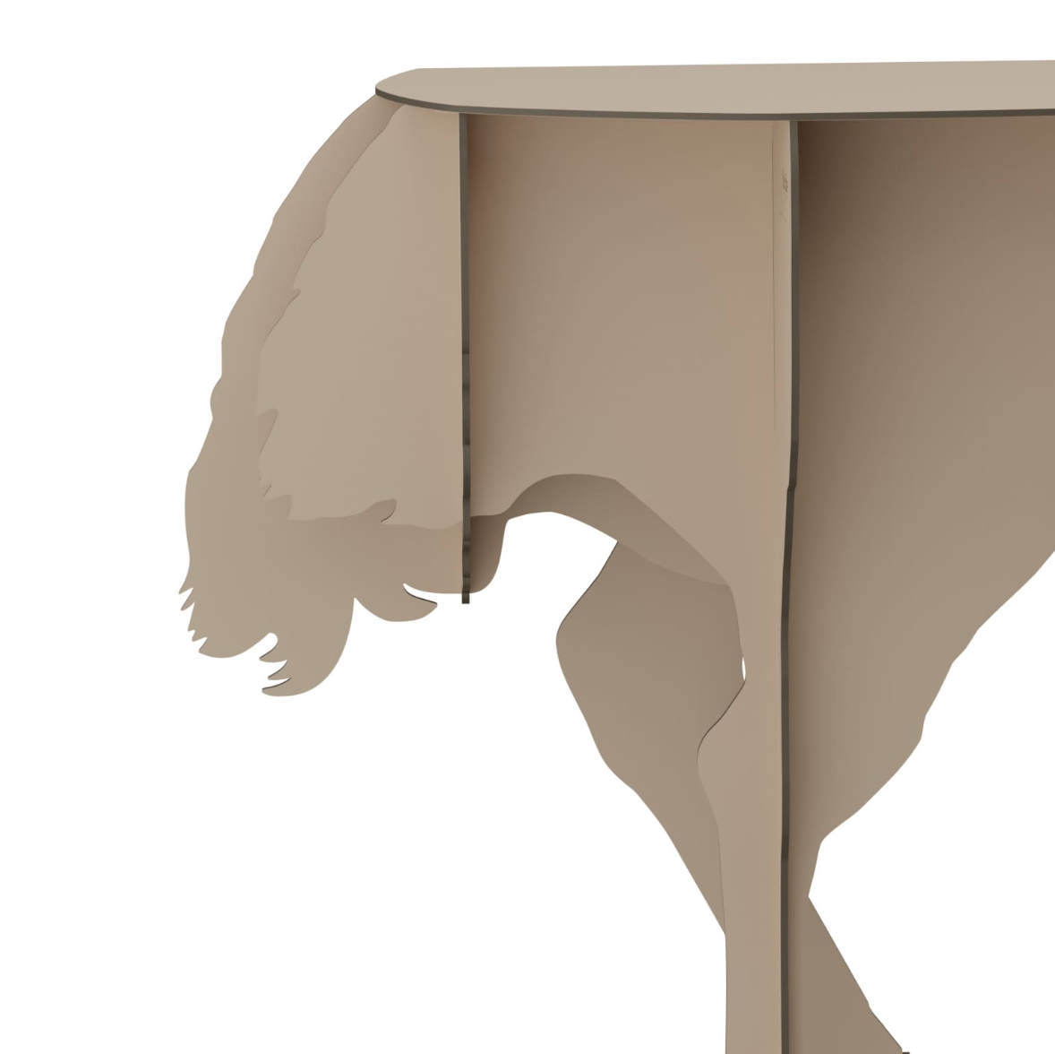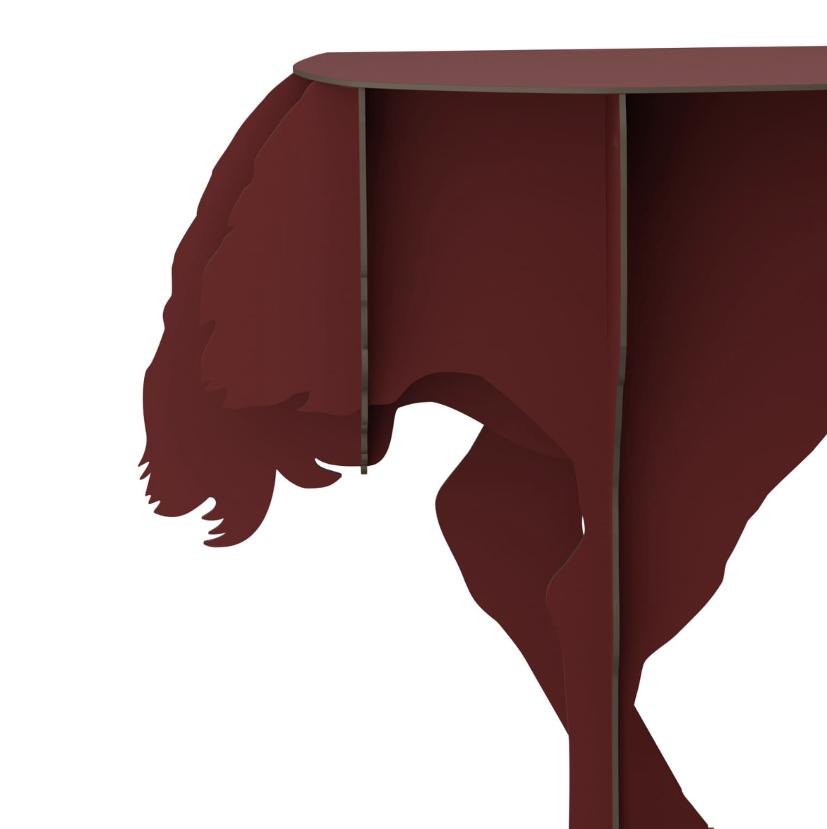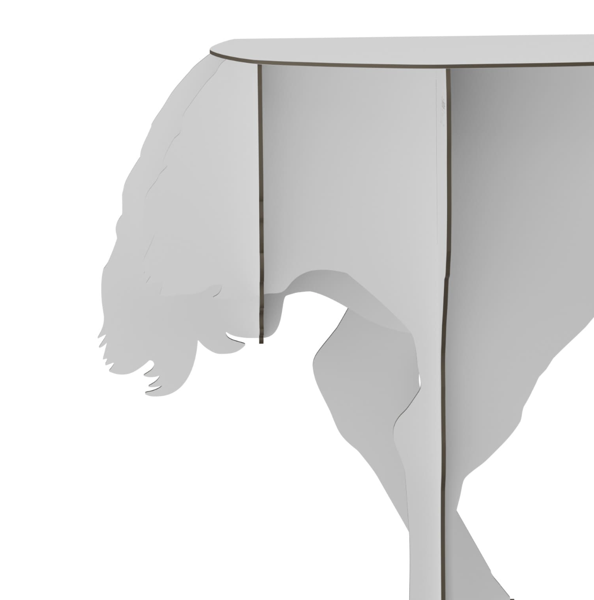 Airy, the Diva ostrich seems ready to take flight in a crazy race and defies the laws of gravity with its two feet barely anchored to the ground. Designed to lean against the wall, the elegant, ornamental and practical console creates surprise and asserts its eccentric femininity in the interiors it inhabits.
