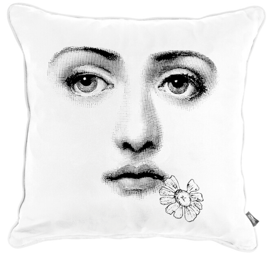 Her endless, surprising metamorphoses transform the Fornasetti sofa cushions into collectors’ items for art lovers.
