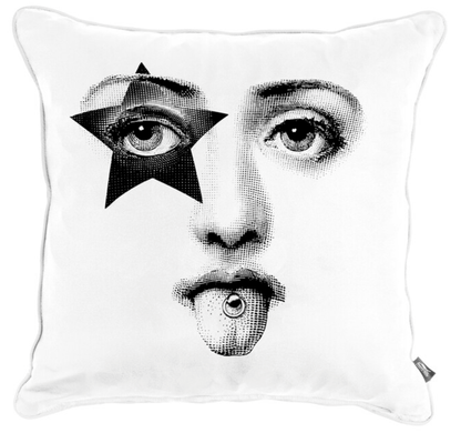 The design for this Fornasetti cuschion comes from the iconic Tema e Variazioni series, which was inspired by Lina Cavalieri's enigmatic face.