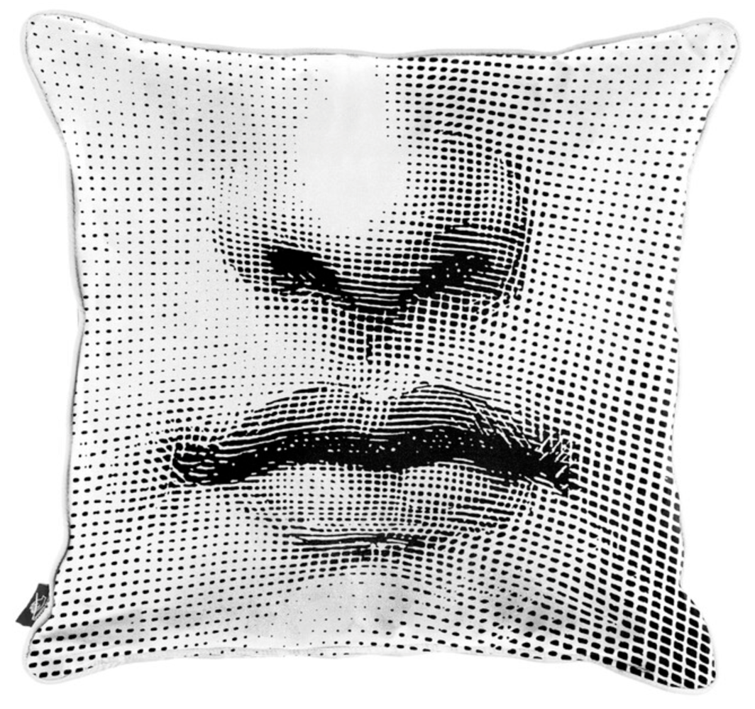 The design for this Fornasetti cushion comes from the iconic Tema e Variazioni series, which was inspired by Lina Cavalieri's enigmatic face.