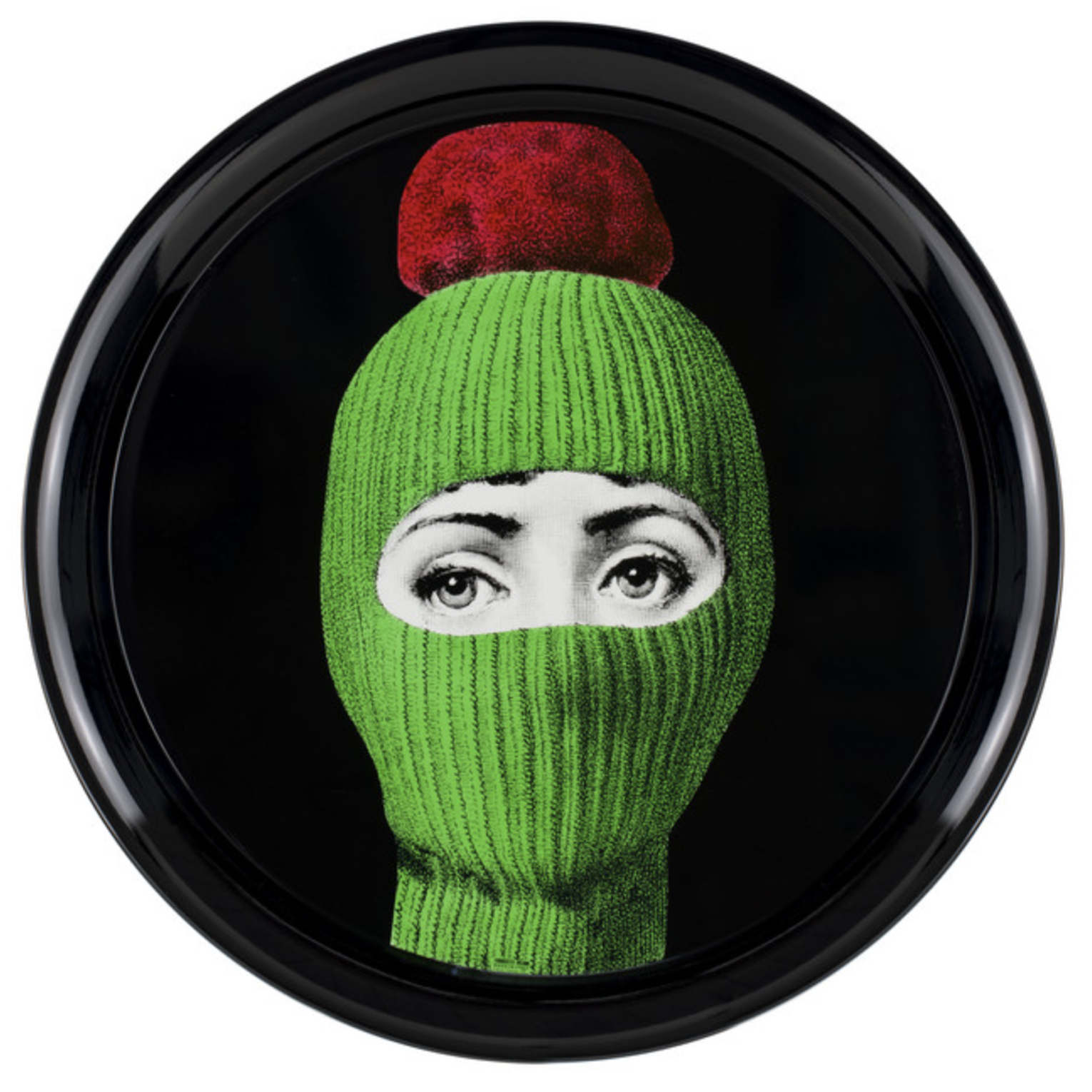 Fornasetti Tray ø60 Lux Gstaad Green / Red ponpon