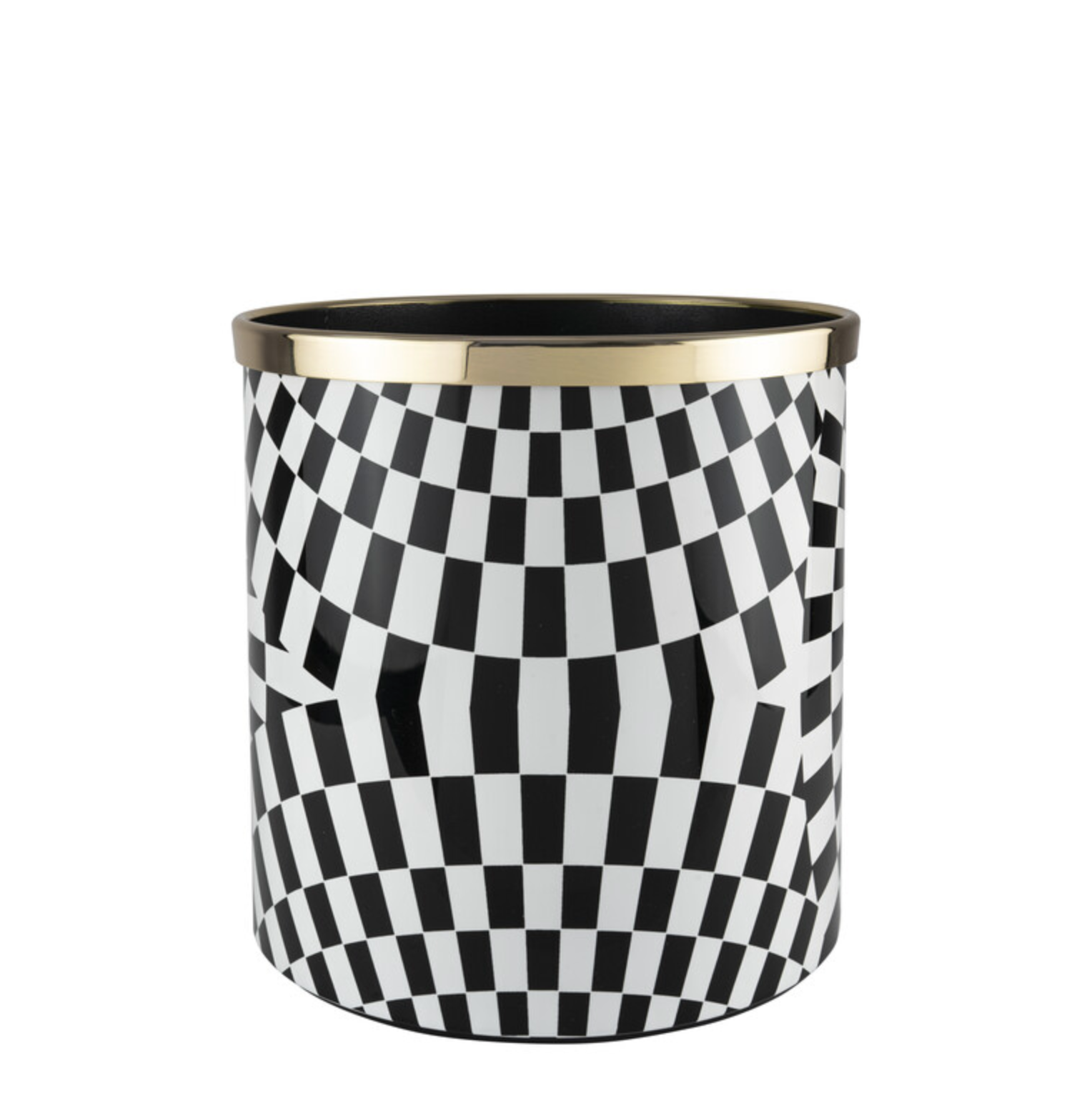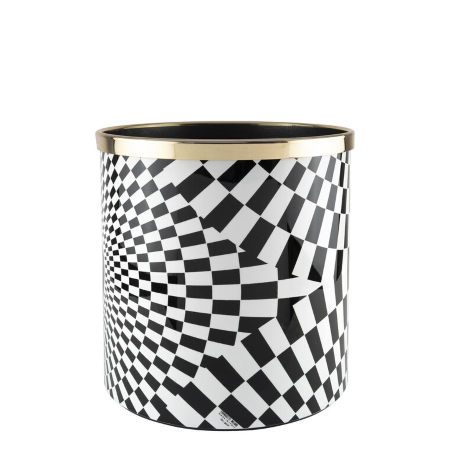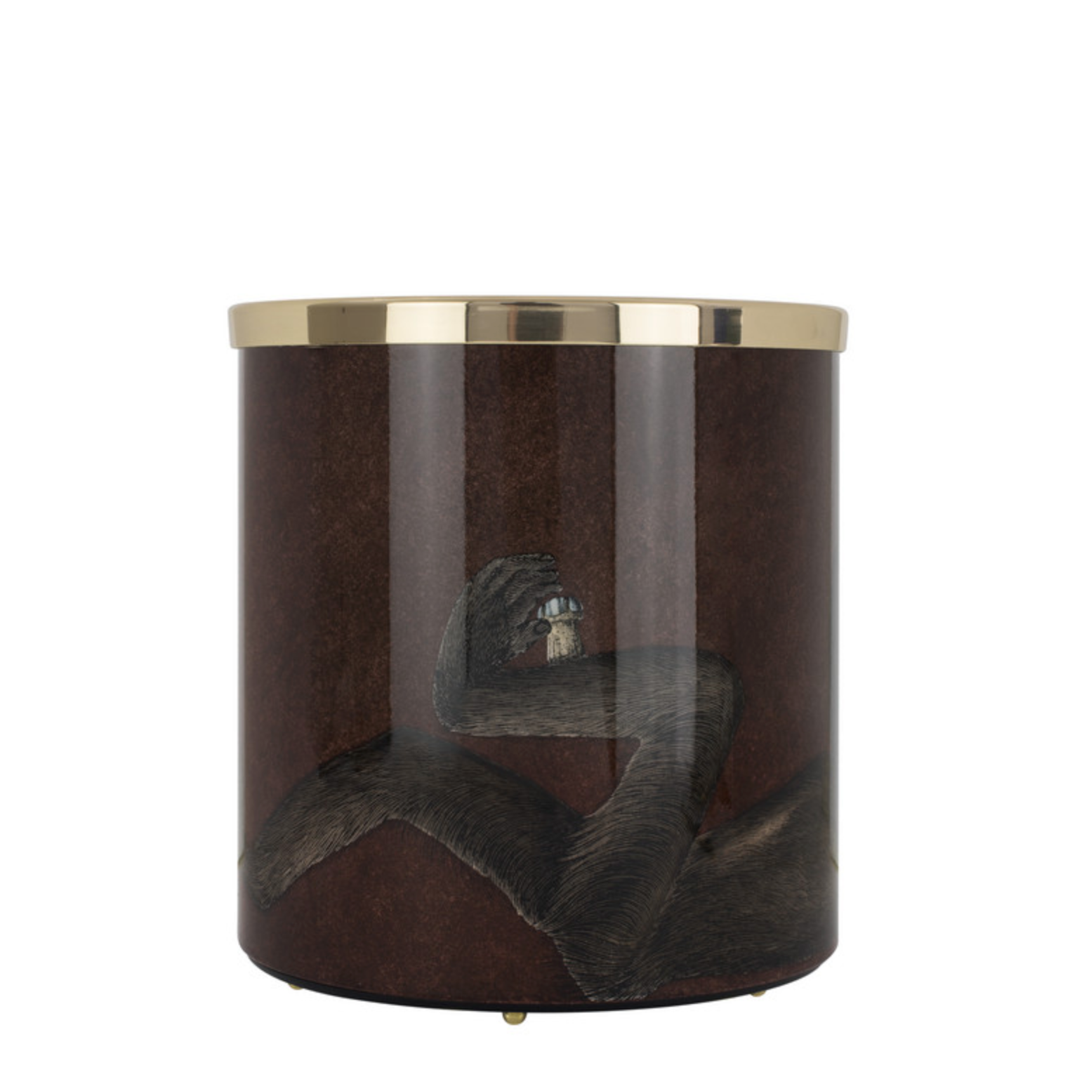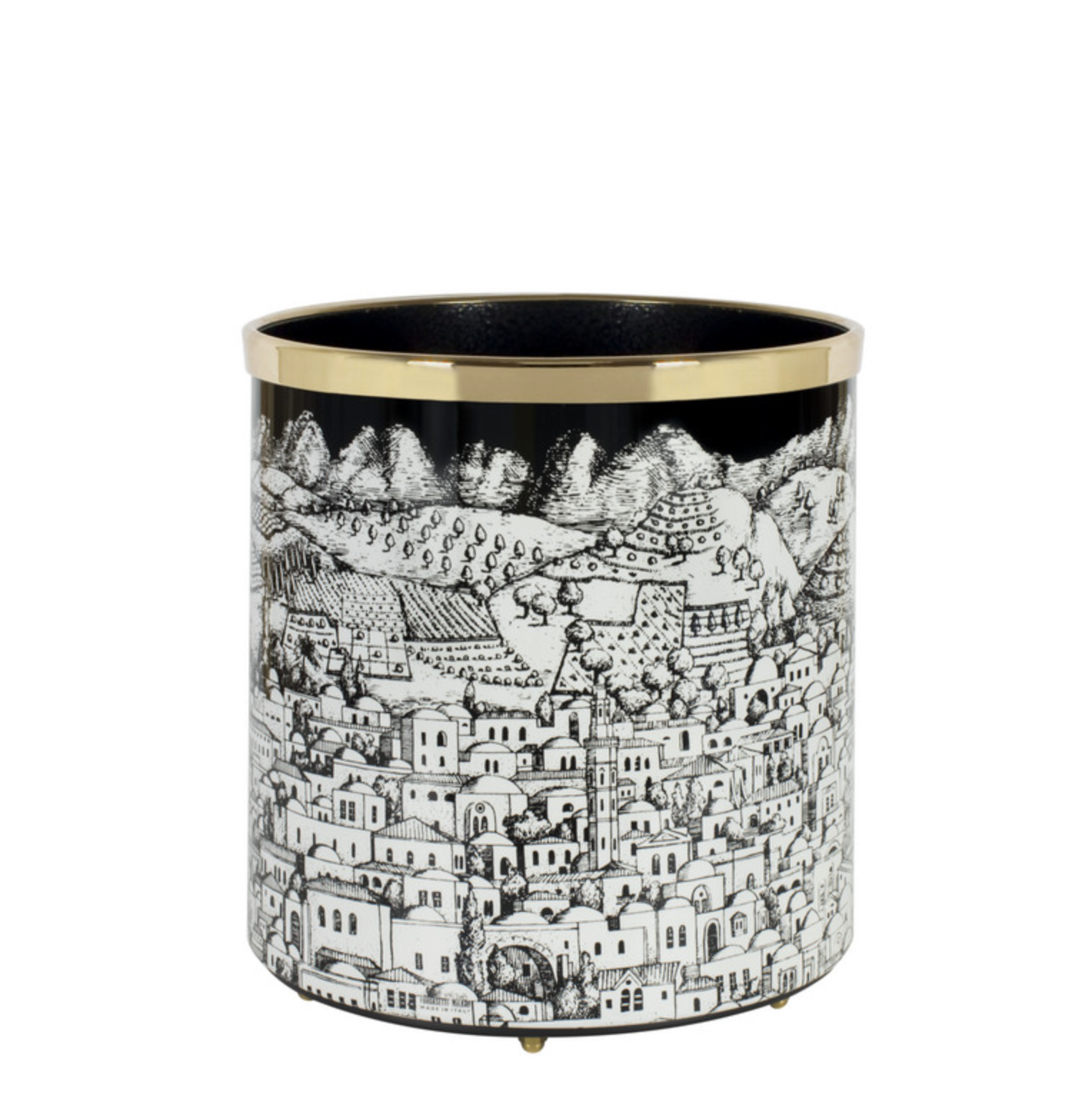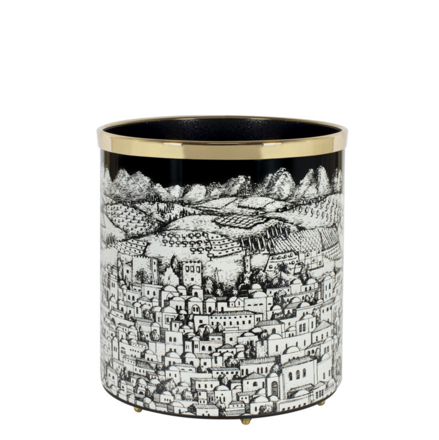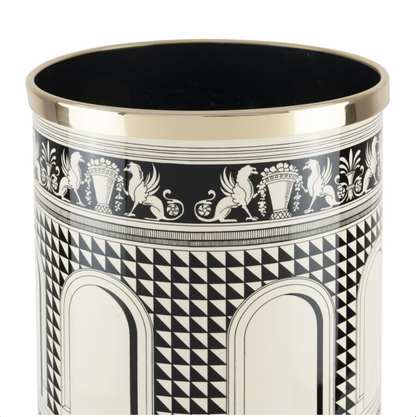Inspired by Italian Neoclassical architecture, this hand-silkscreened and lacquered metal umbrella stand, with a top edge and brass feet, plays at creating new worlds: this furniture accessory takes on the shape of an elegant antique palace - a visual icon of the Atelier - and lends your environment a touch of sophisticated functionality.