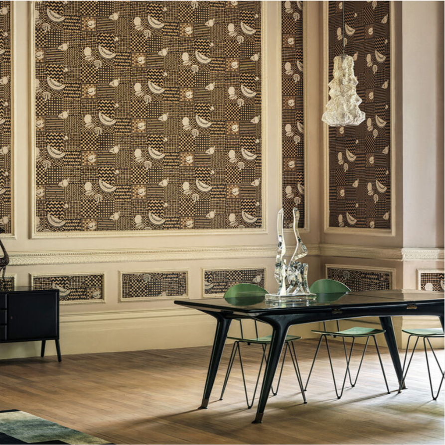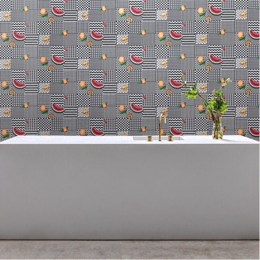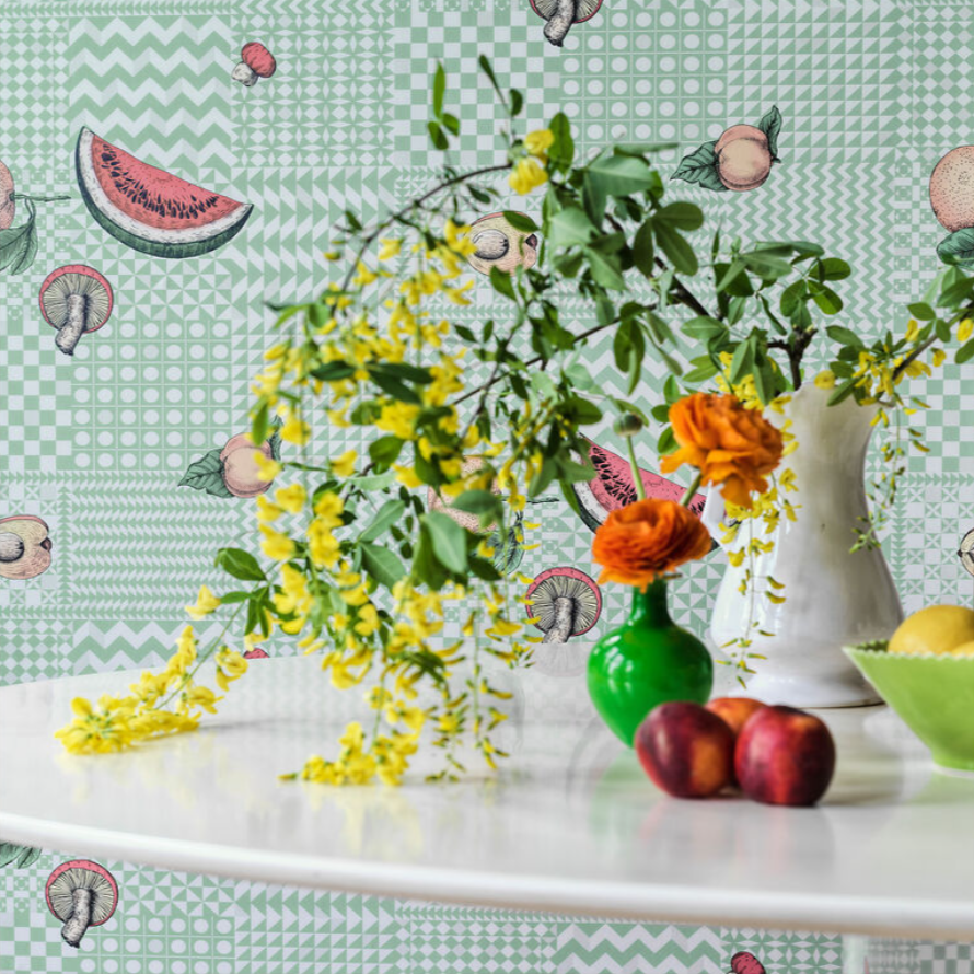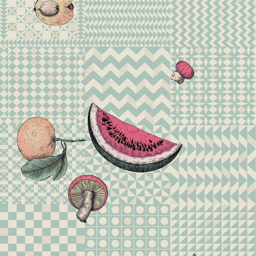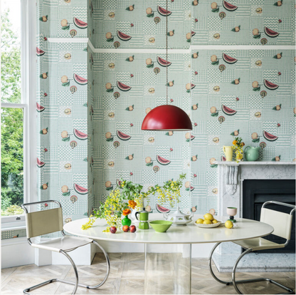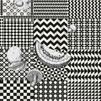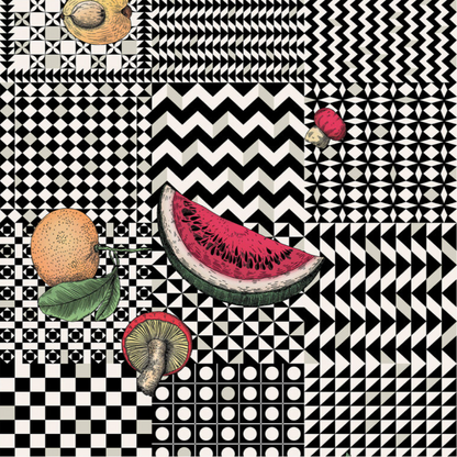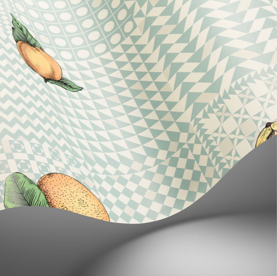 In this fruit wallpaper the clear-cut graphic lines infuse this arresting wallpaper with Fornasetti’s unmistakable signature style and timeless allure.