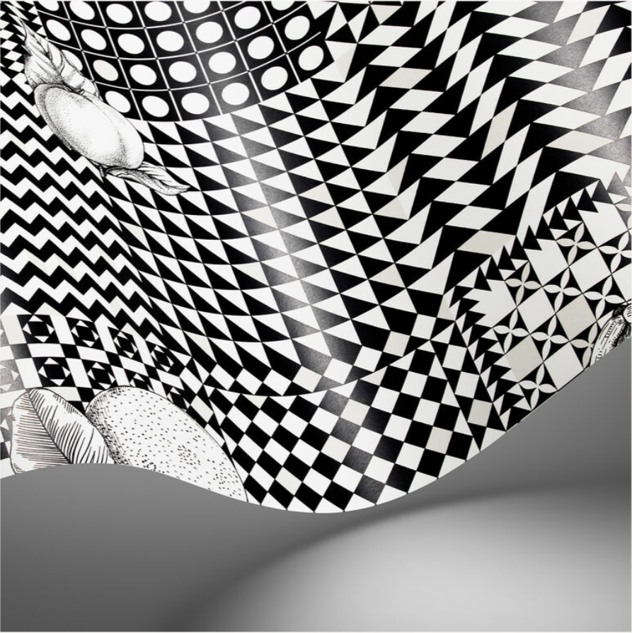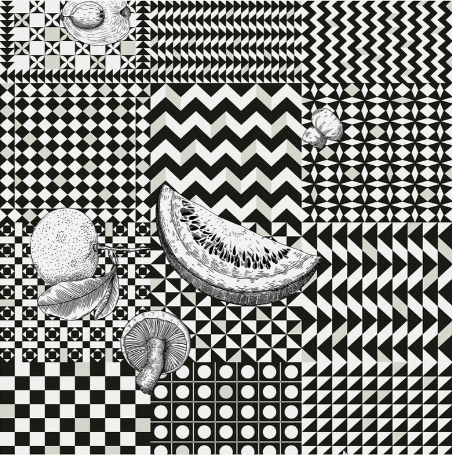 Each of Frutto e Geometrico’s colourways provide a variation on this unique combination or structure and organic shape. Choose from chessboard black and white, to the softest mint pastels, or a dusk lilac grey.