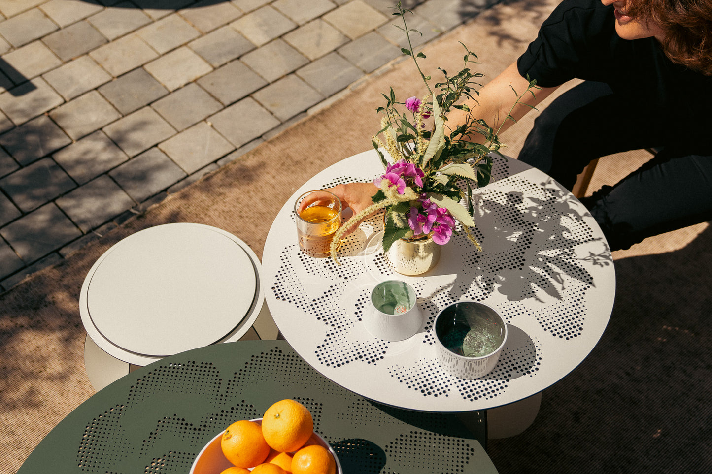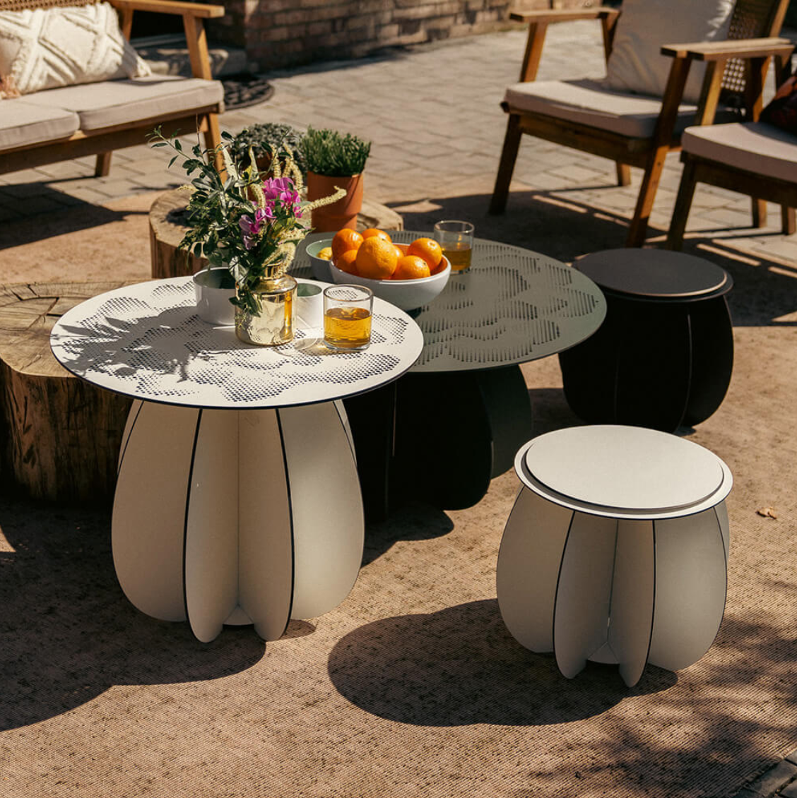 The Gardenia outdoor stool was designed by Florence Bourel. For Ibride she has designed the Gardenia collection of outdoor furniture, including coffee tables and stools. These pieces of furniture are inspired by the world of cacti and reflect their round, uncluttered shape.