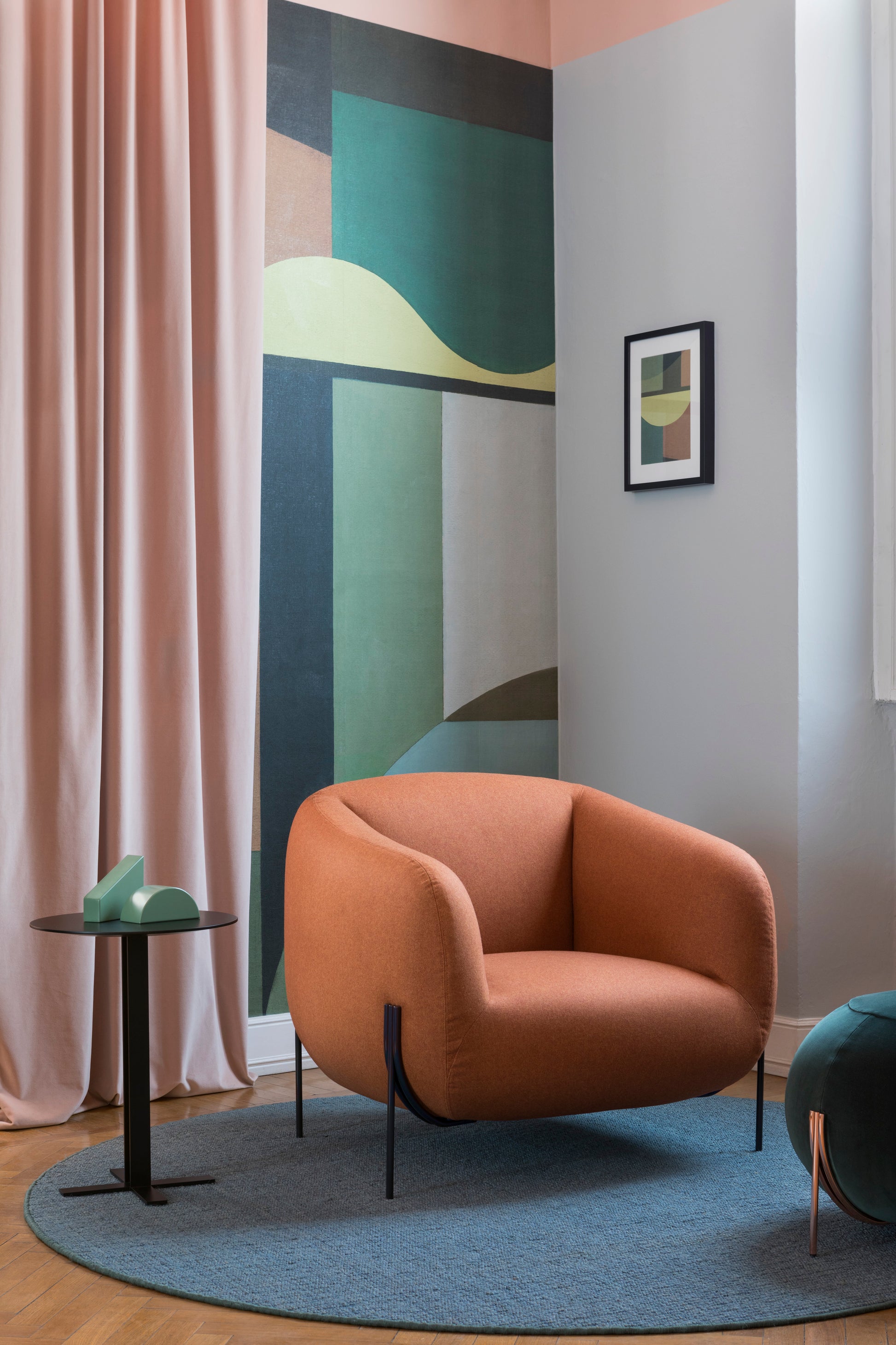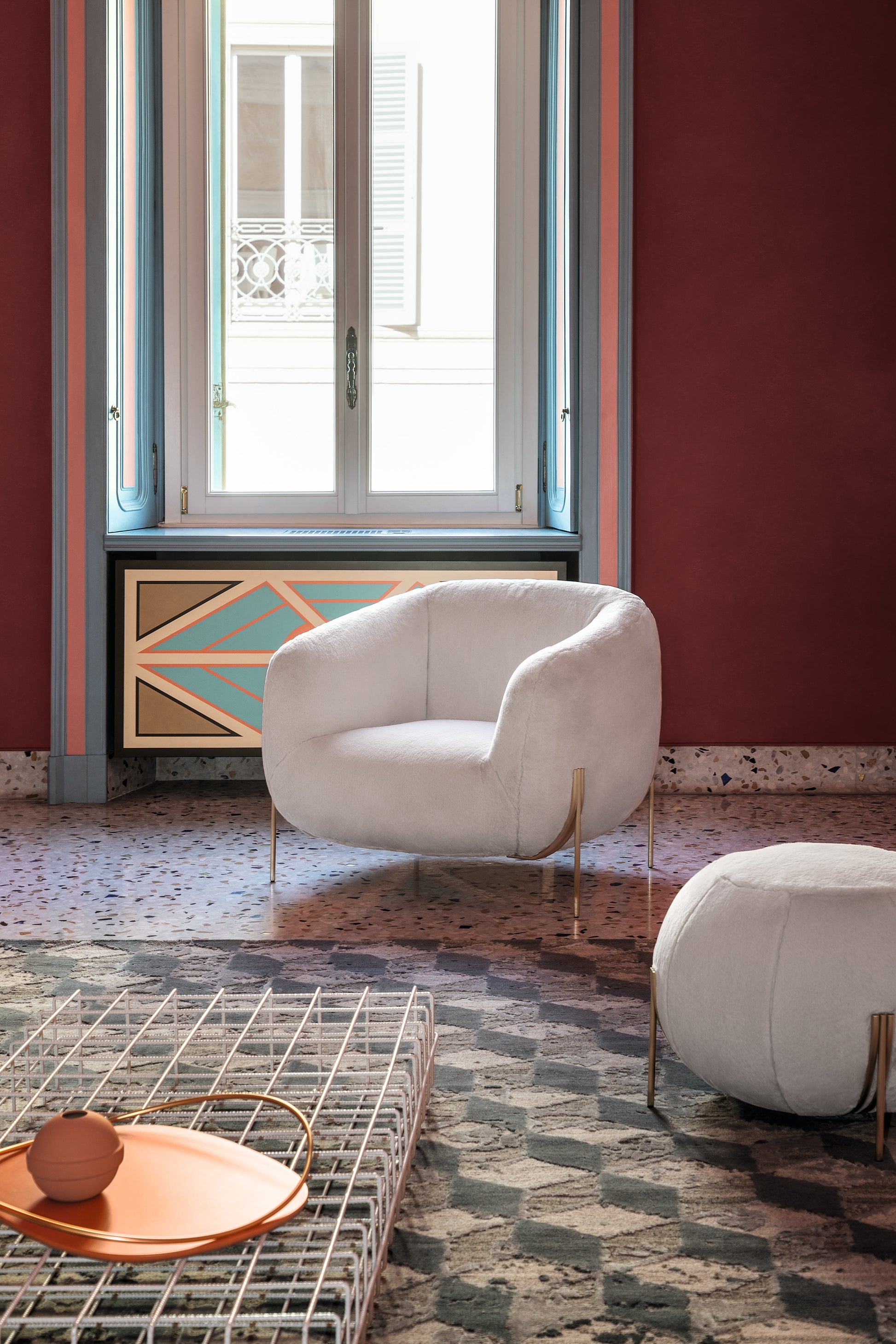 Sometimes a name can say a lot, sometimes it says everything. Geo is an all rounded armchair, the protagonist in a home. It’s generous without invading space, welcoming without being suffocating and soft without being informal. Thanks to its unique design Geo is voluminous yet light, like a nest suspended in air held up by small branches. The proportions have been designed with upmost attention. Every detail has been carefully studied to give life to a special object where the main volume of the seat and the very light volume of the legs find a unique harmony together. The metallic adds a luxurious feel. Further the material shell is completely removable for dry cleaning and the metal structure in the various finishing is designed for easy cleaning. Fully removable covers.