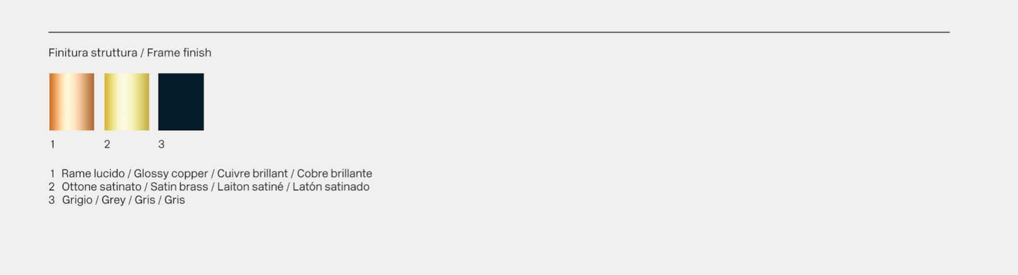 Frame & feet available in Black Grey (RAL7021) or Satin Brass