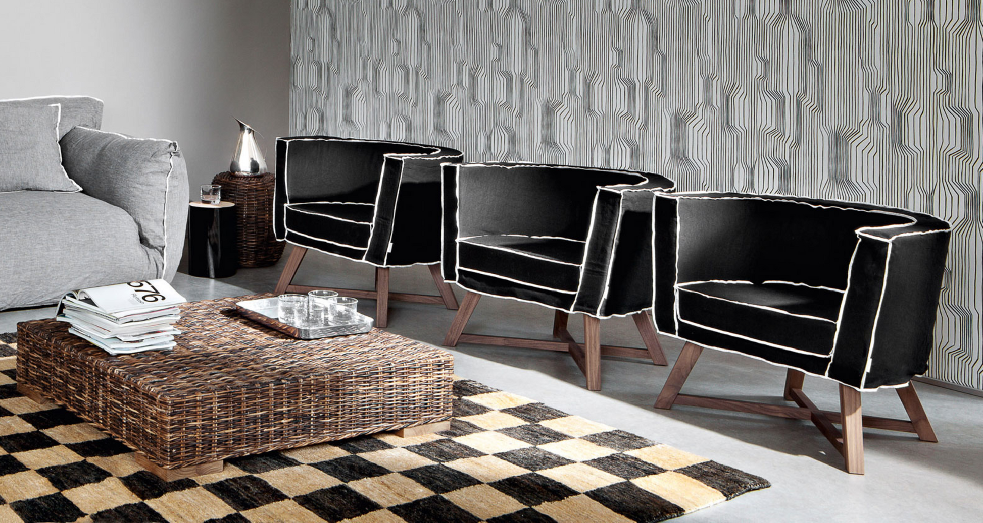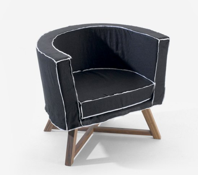 Armchair in walnut or oak, upholstered seat and back in polyurethane foam. Also available with removable cover.